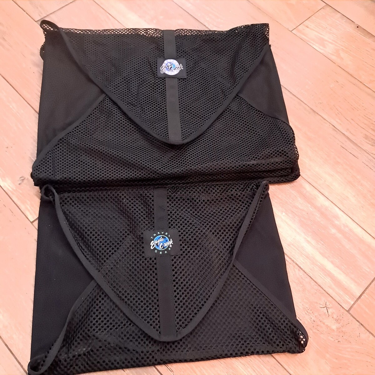 Set of 4 luggage folders for travel. Includes 3 large ones and 1 smaller size. The plastic bottom instructions are cracked in some areas as shown. Actual mesh/fabric is in very good condition. See pics for measurements and details.
