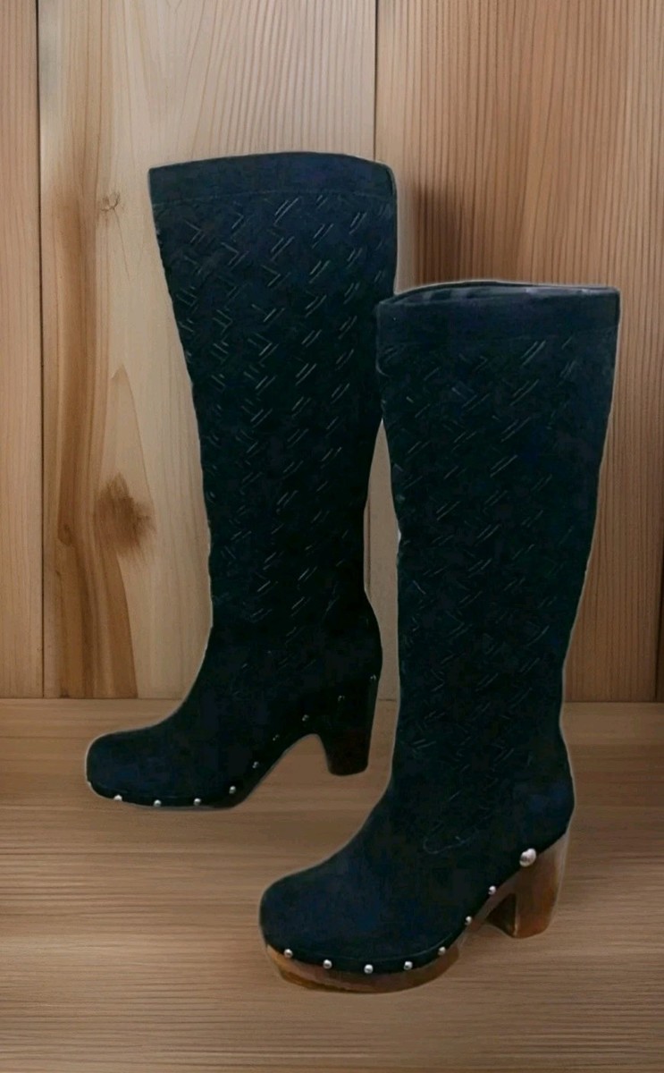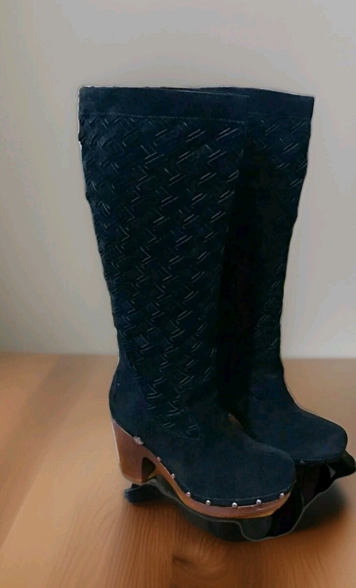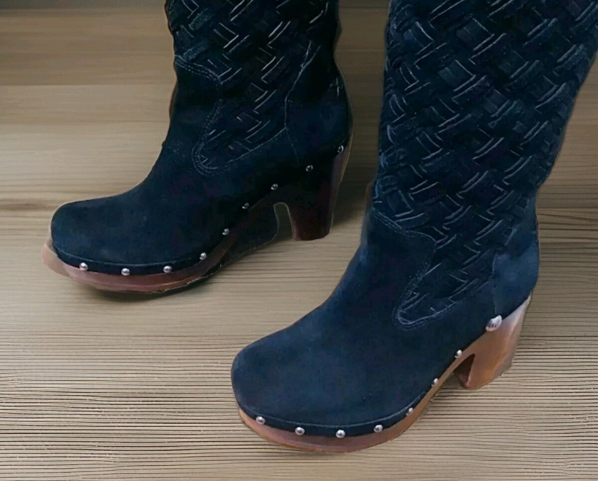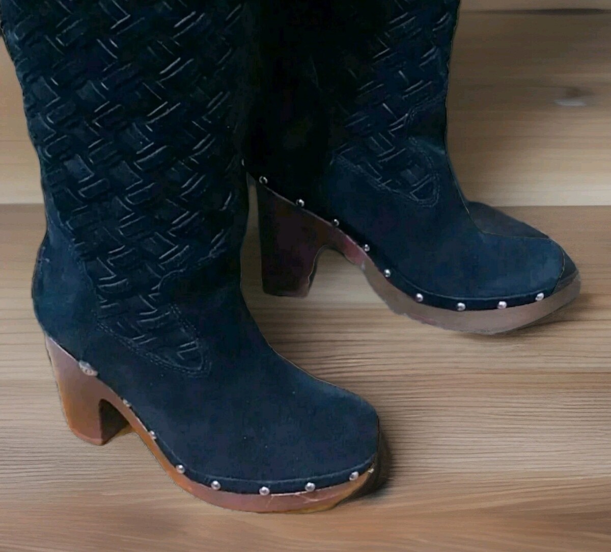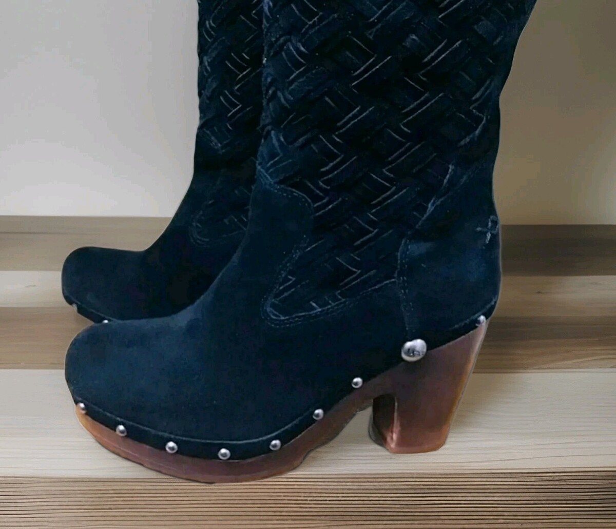 UGG Arroyo 3363 Weave Black Suede Leather Clog Knee High Boots US 8