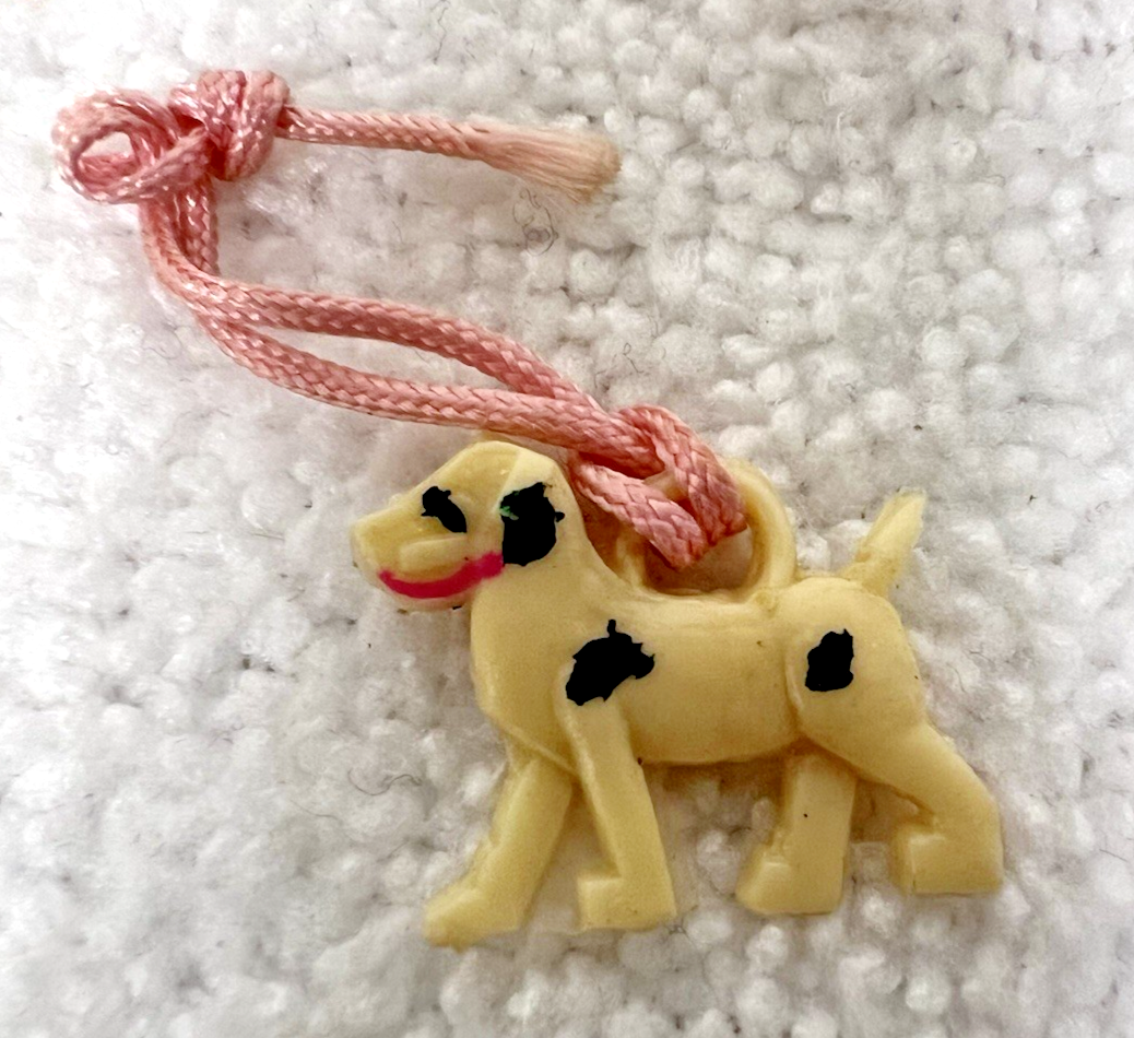 Vintage Miniature Celluloid Cracker Jack Charm Gumball Prize Toy Spotted Dog