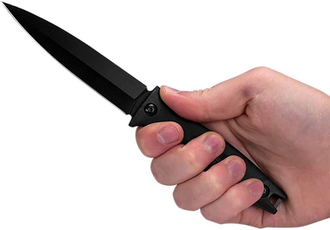 KERSHAW SECRET AGENT Tactical Black Straight Fixed Knife with Sheath 4007