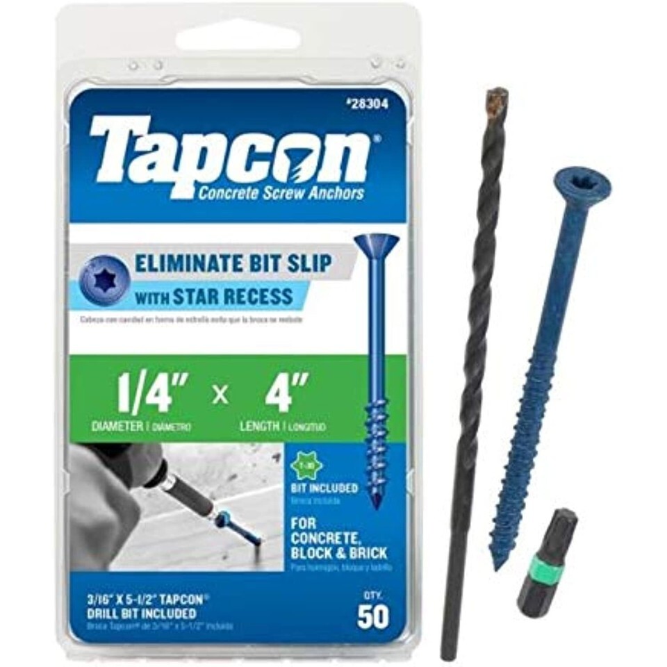 As the original concrete screw anchor that revolutionized the construction world, Tapcon brand concrete anchors deliver the ease of use, superior precision and the unparalleled performance that professionals demand. With a new star recess to eliminate bit slip, Tapcon drives with ease and the patented thread design allows for quick and successful installation no matter the type masonry substrate anchored into. Use Tapcon concrete screw anchors for wood framing to concrete, electrical equipment, furring strips and many other applications that require fastening into brick, block or concrete.