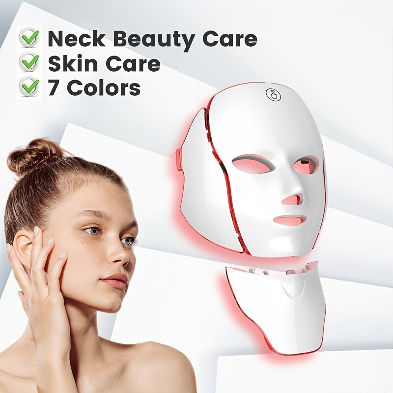7-color Facial Mask Device, 138-LED Light Bead Mask Beauty Device, 7-in-1 Face + Neck Care Equipment, 7-mode Automatic Care Beauty Instrument, USB Charging, Portable Home Beauty Care Tool, Girlfriend's Gift And Valentine's Day Gift