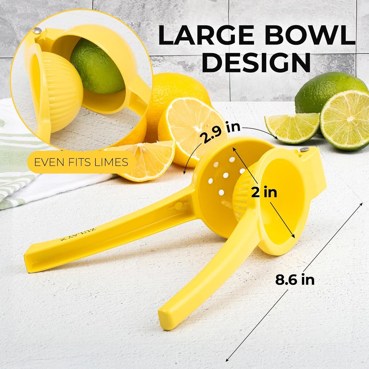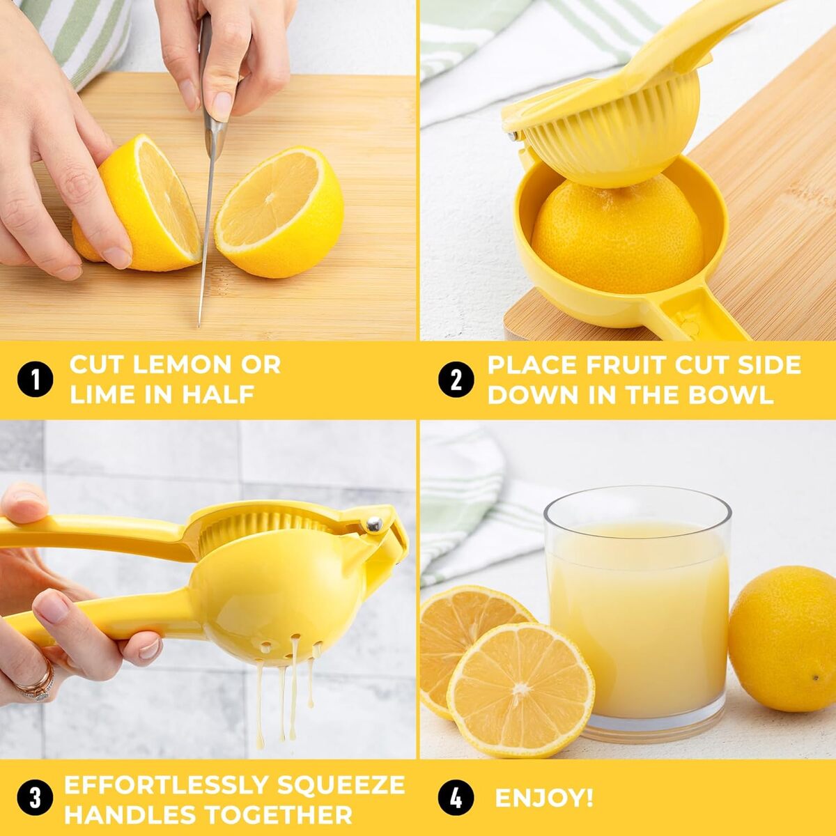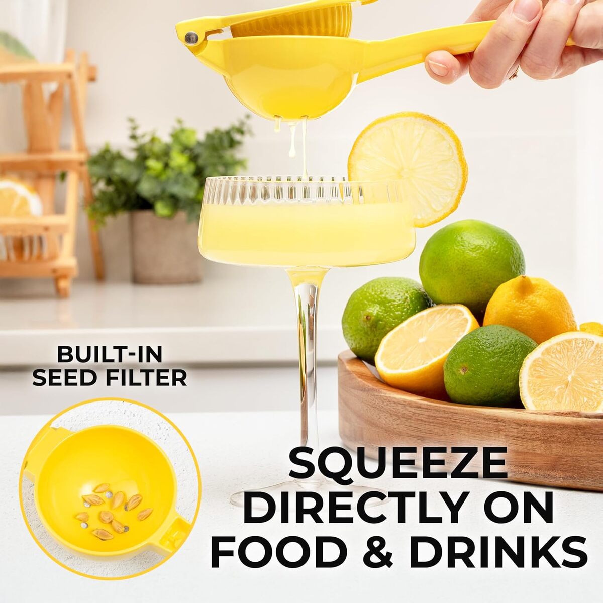 GET EVERY LAST DROP OF JUICE: Our lemon squeezer won’t waste even a single drop from your favorite fruit! Watch limes, lemons, and small oranges beg for mercy, even with a soft squeeze. The holes at the bottom of the citrus juicer serve as a built-in strainer.