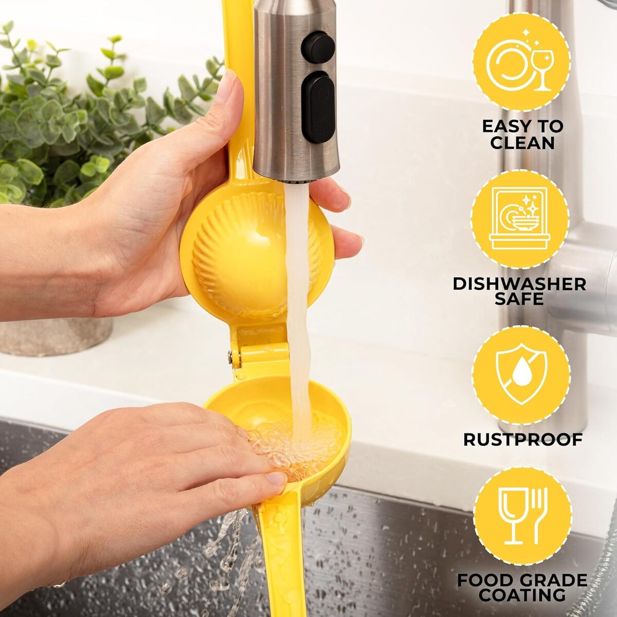 CLEANS IN SECONDS: After adding a tangy flavor to your recipe, simply toss the citrus juicer in the dishwasher for a quick clean up (top-rack only), or wipe clean with a sponge or cloth after each use.