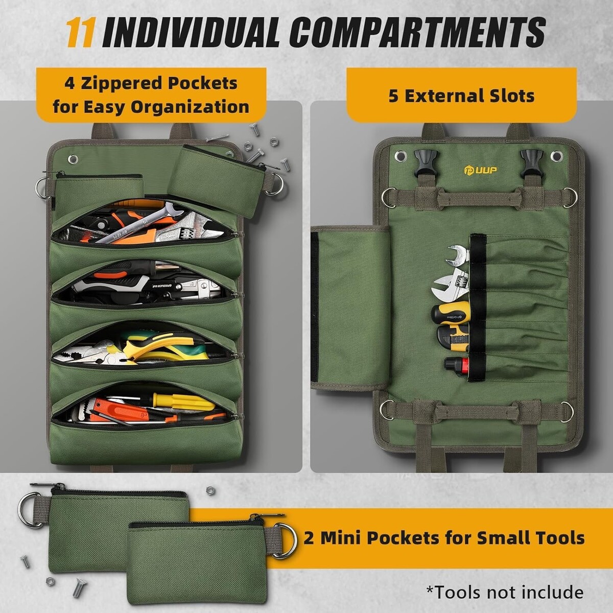 Perfect for trips or work, this tool roll bag rolls up compactly, saving you valuable space.
