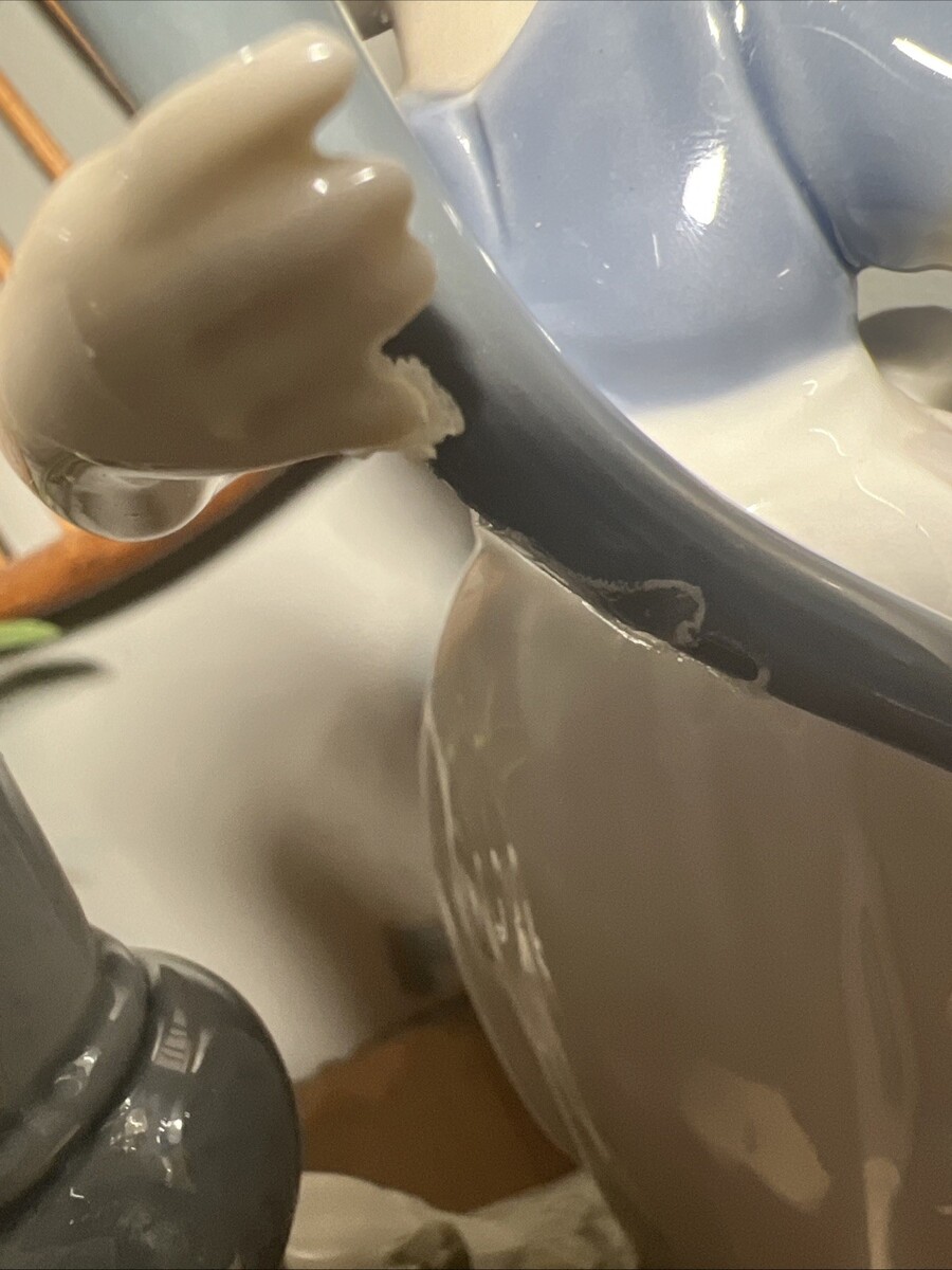 Has small piece off pump, also has chip on fingers.