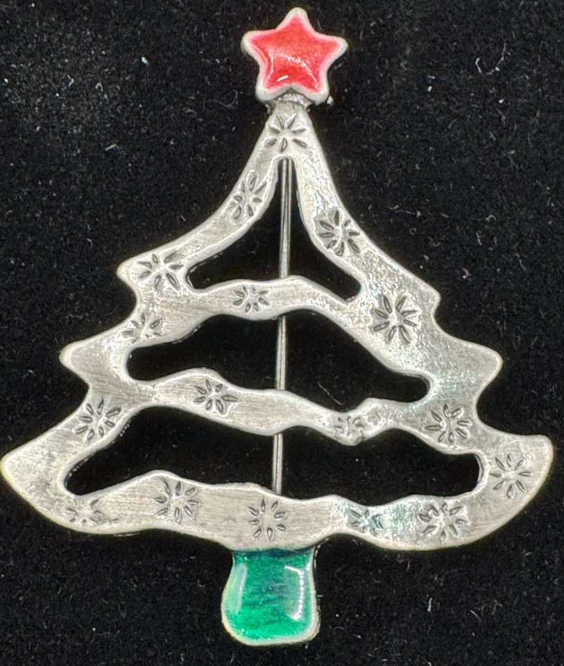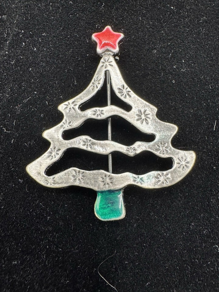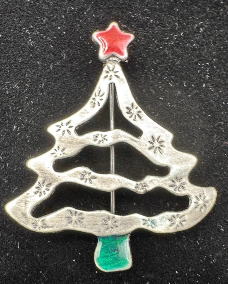 Christmas Tree Brooch Silver Tone Red Star and 50 similar items