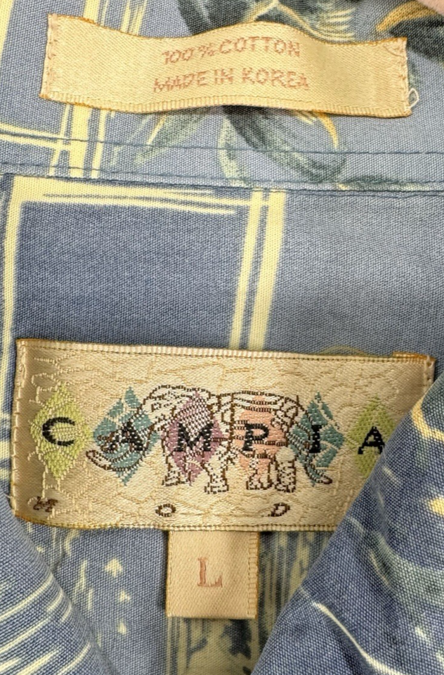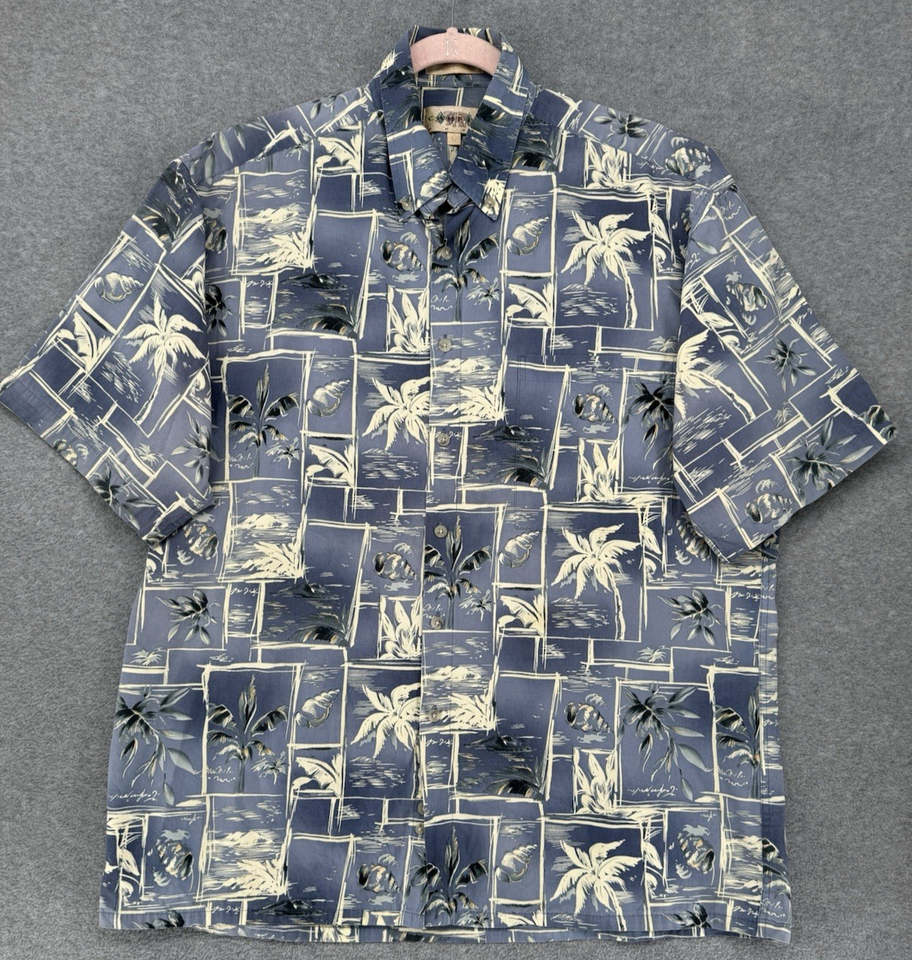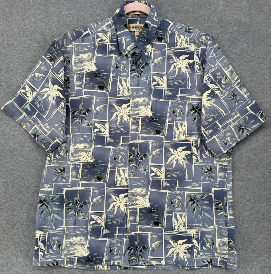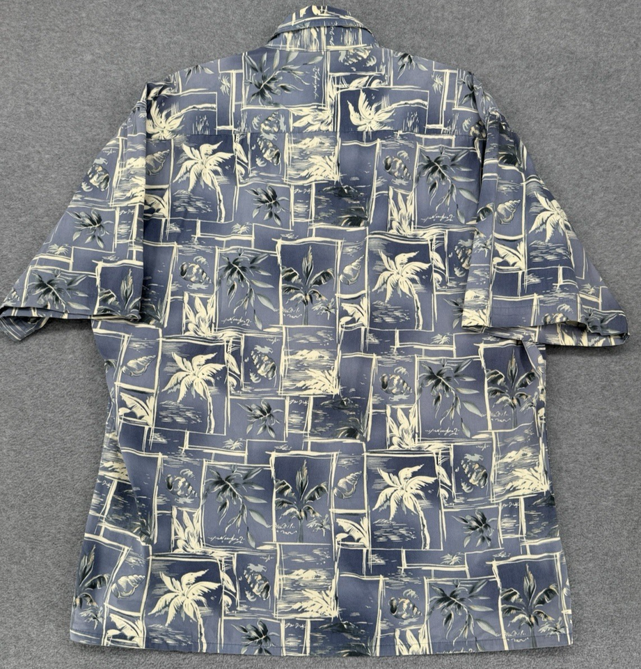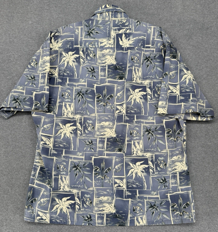 Large Hawaiian Shirt Blue Palm Tree Tropical Cotton
