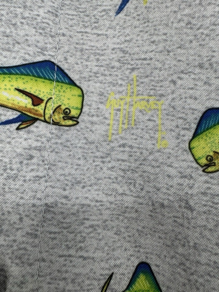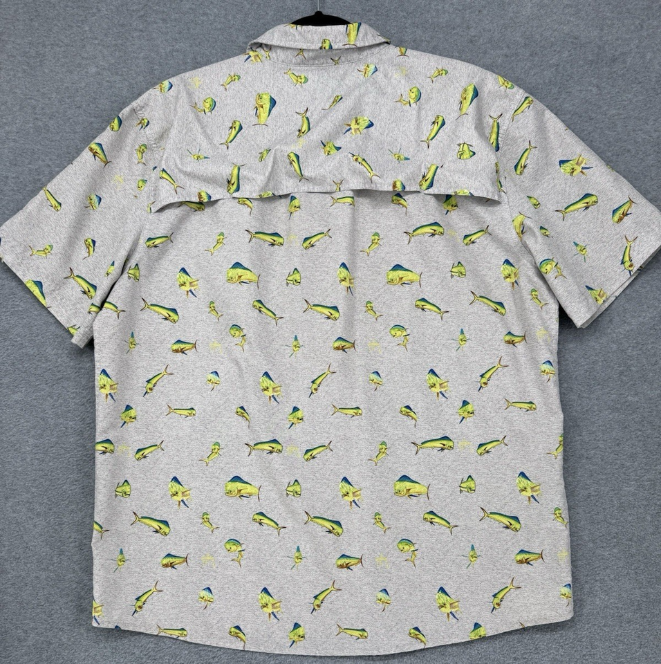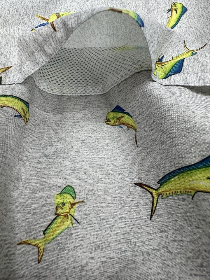 Guy Harvey Mahi Mahi Fishing Shirt Large Gray Dolphin Fish Button Up