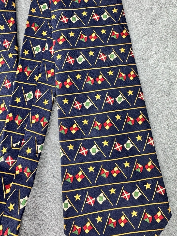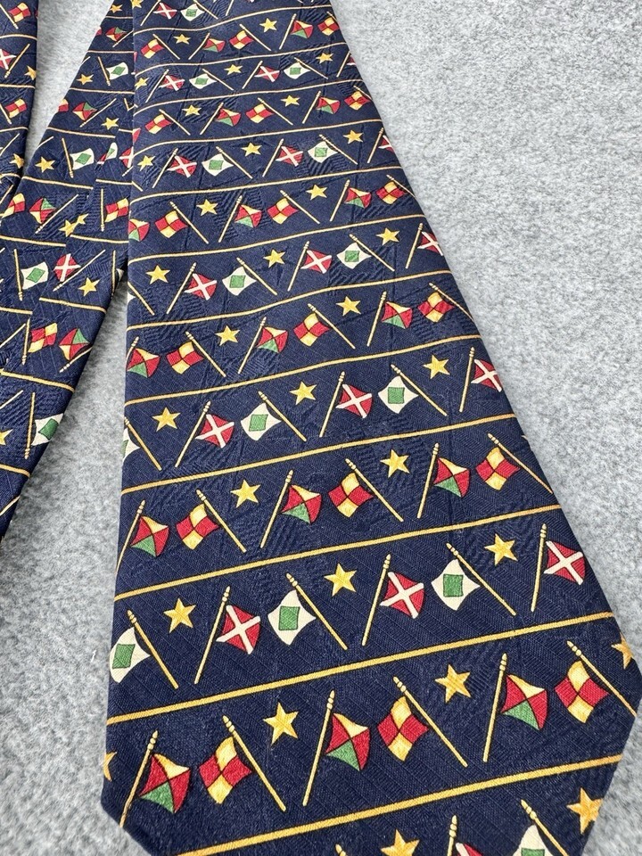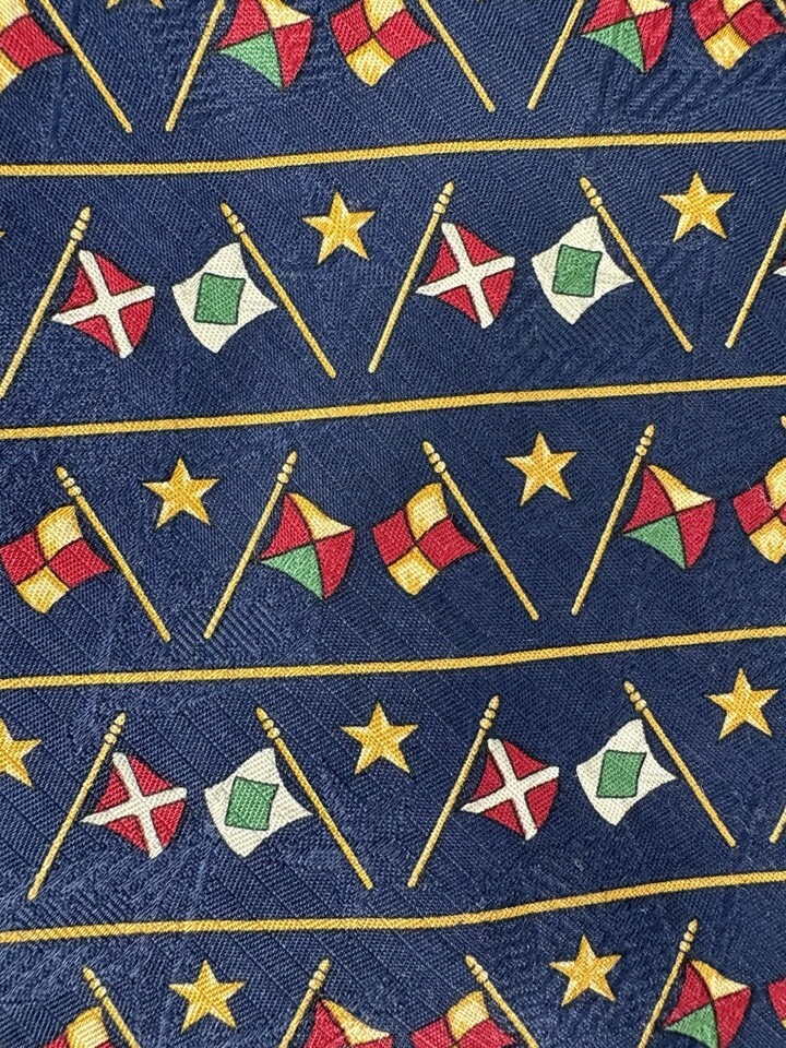 Tommy Hilfiger Nautical Flags 100% Silk Necktie Navy Blue Sailing Maritime Tie
