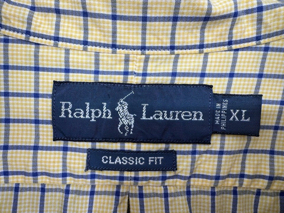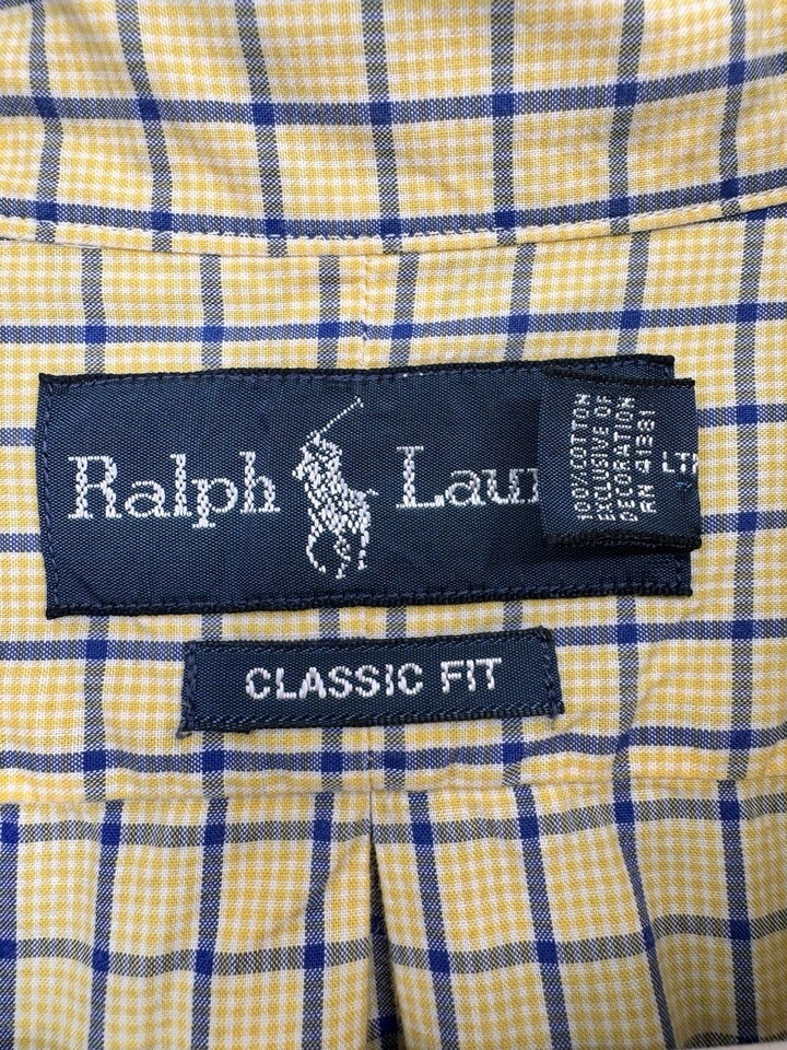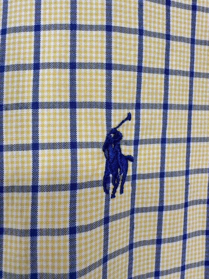 Ralph Lauren Polo Pony Men’s Classic Fit Button Down Shirt Yellow Blue Plaid XL