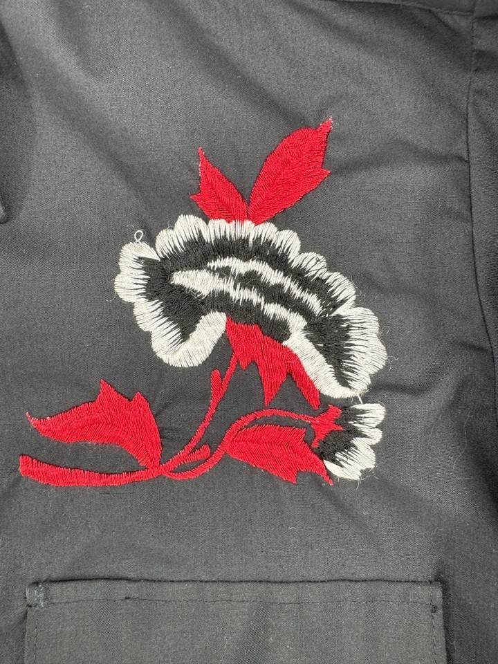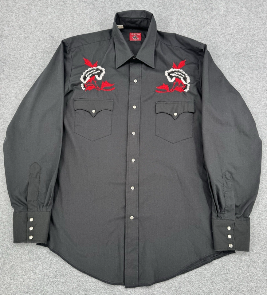 Vintage Chute Western Shirt Black Red Floral Embroidery Pearl Snap