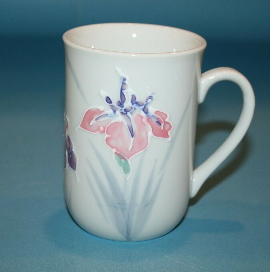 Pier 1, Flower, Iris, Coffee Mug, Floral, Tea Cup, Pink, Purple, Hand Painted, Japan