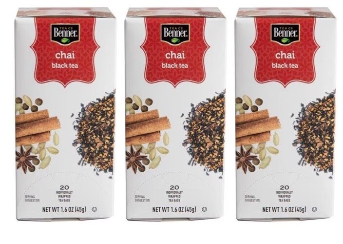 Benner Tea Co Black Chai Tea Bags | 1.6 oz, (4.8 oz, 3-pack) | 60 bags 9/26