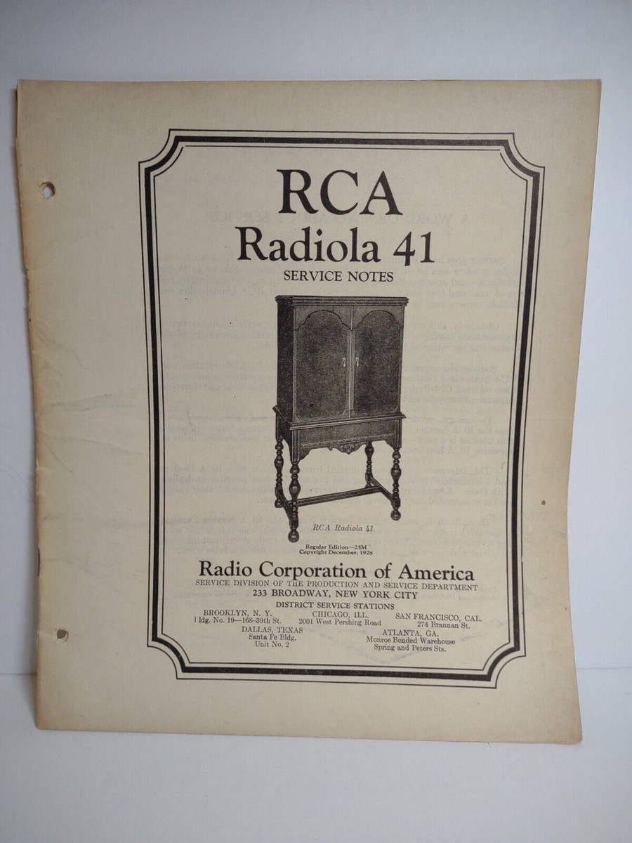 RCA Radiola 41 Original 1928 Service Notes and similar items