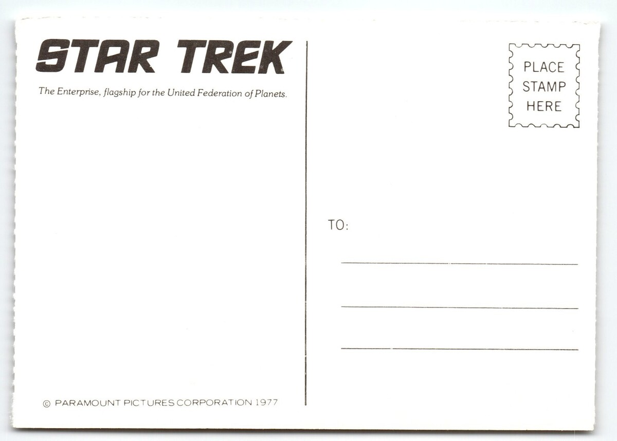 Vintage 1977 Star Trek Enterprise Firing Phasers Chrome Postcard