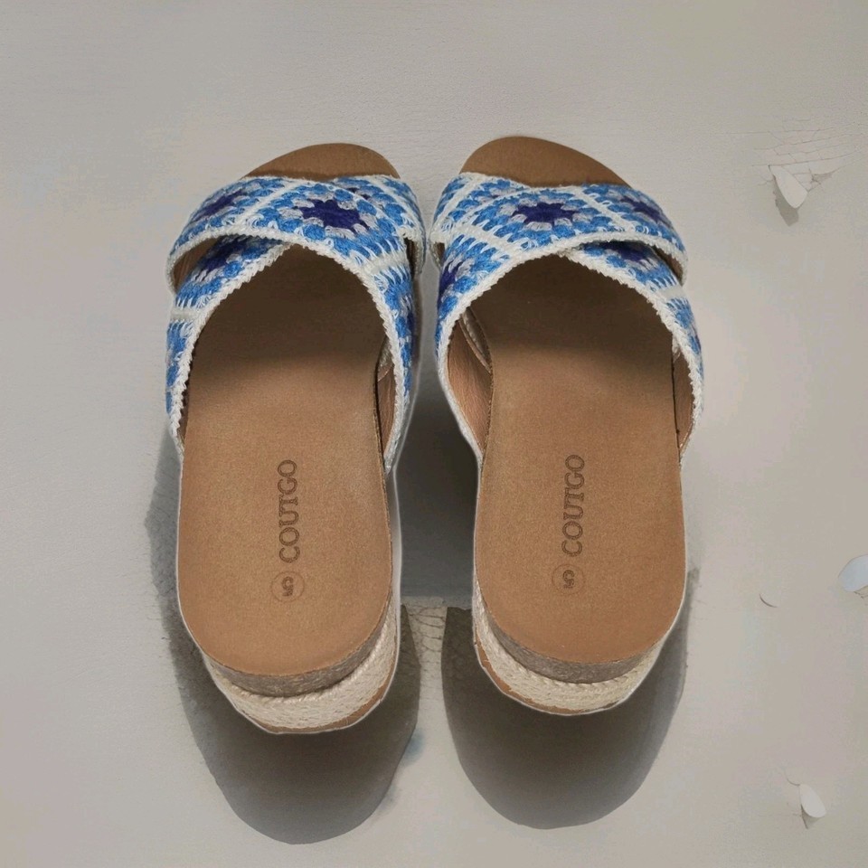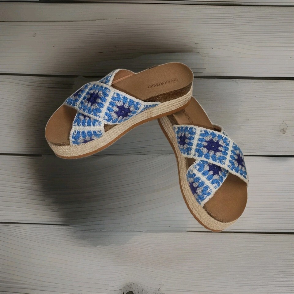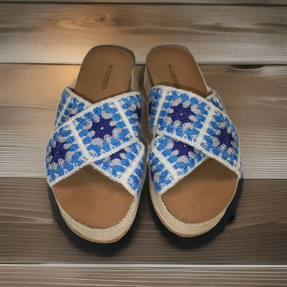 Coutgo Womens Platform Espadrille Sandals Floral Crochet Open Toe Size 5