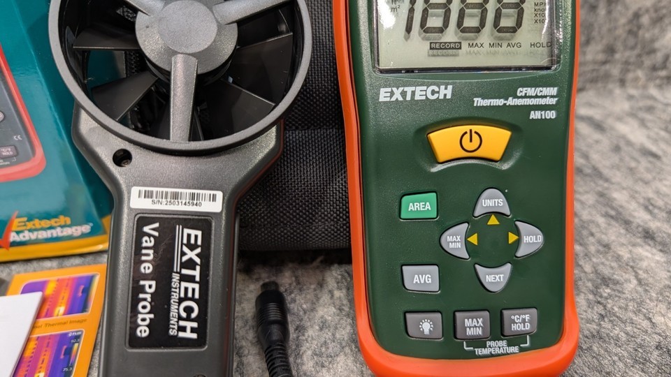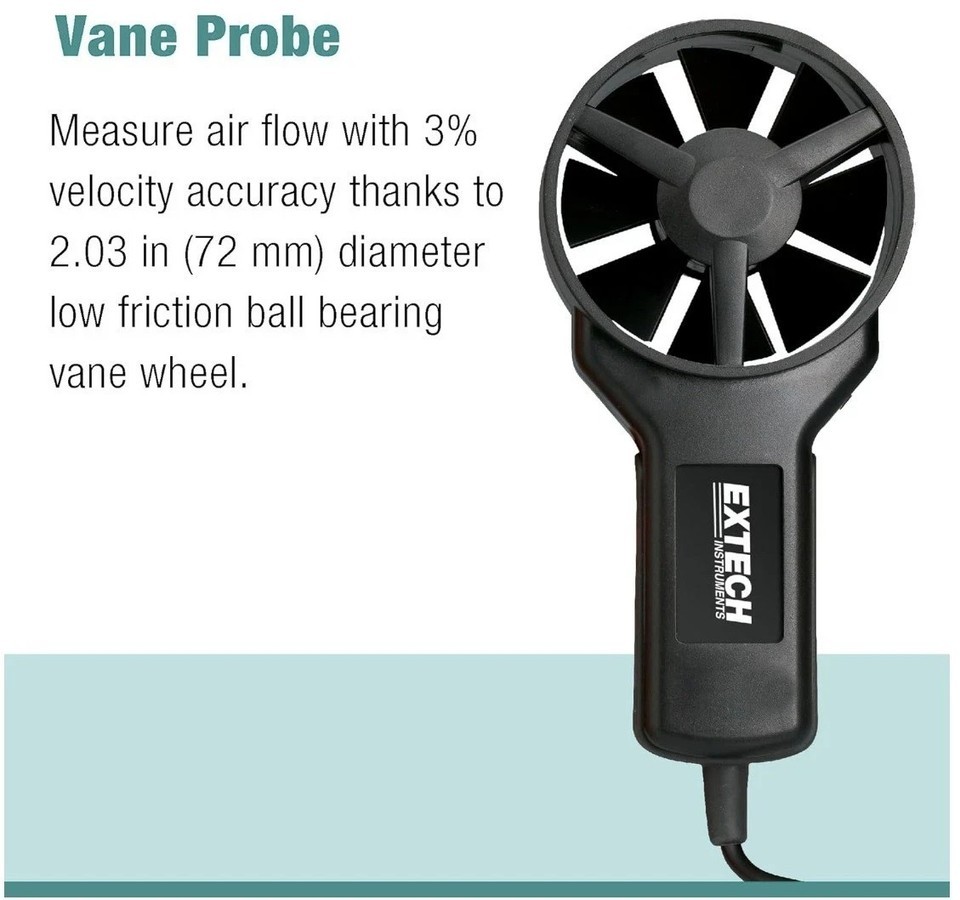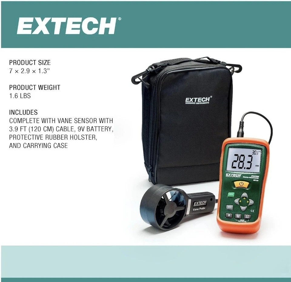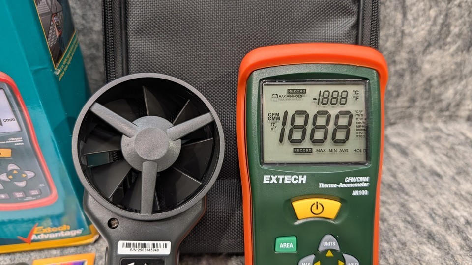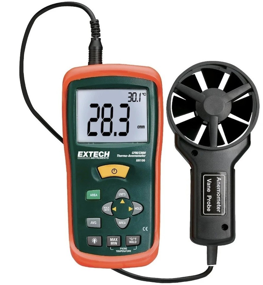 Extech Instruments CFM/CMM AN100 Thermo-Anemometer With Vane Probe New