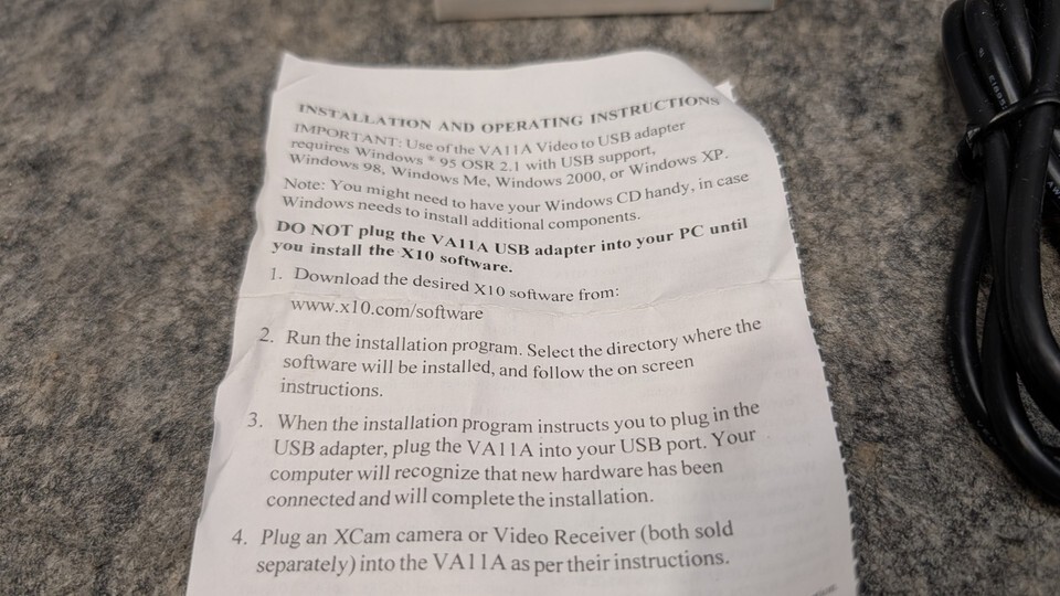 USB Security Camera Video Adaptor X10 PowerHouse VA11A New