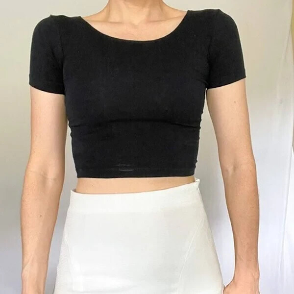 American Apparel Women's Crop Top Solid Black Cotton with Elastane Cropped Med