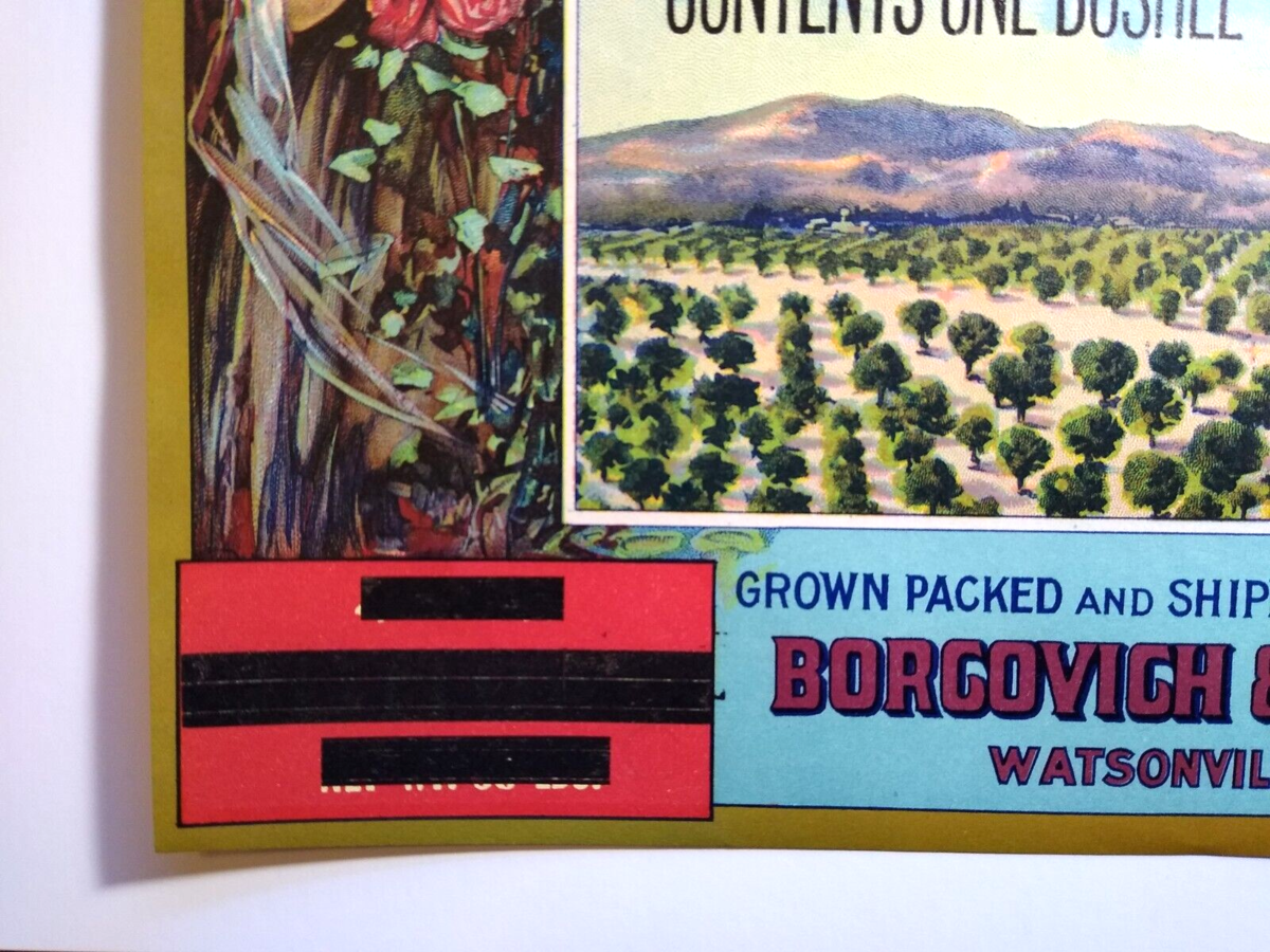 Vintage original label. Unused old stock with light age wear. Does have overstrikes as shown. Size is 10.5" x 9.5".