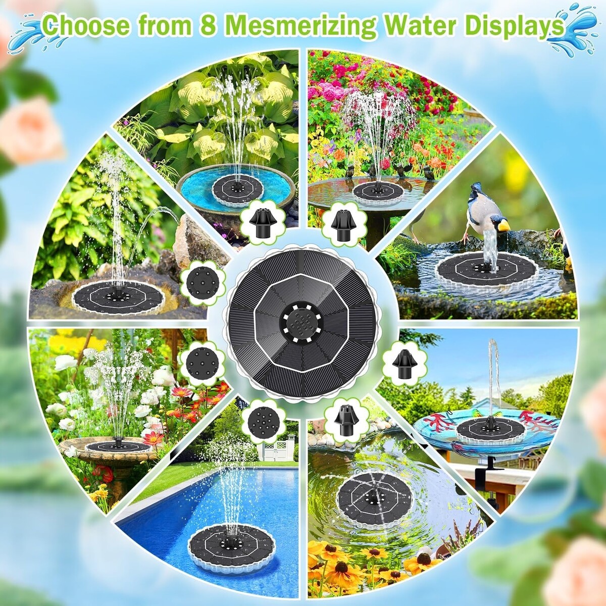 Customizable Solar Fountain with 8 Spray Patterns & Automatic Shut-off Feature