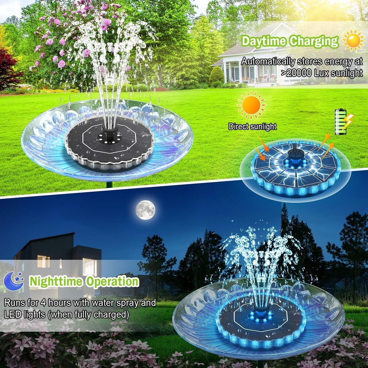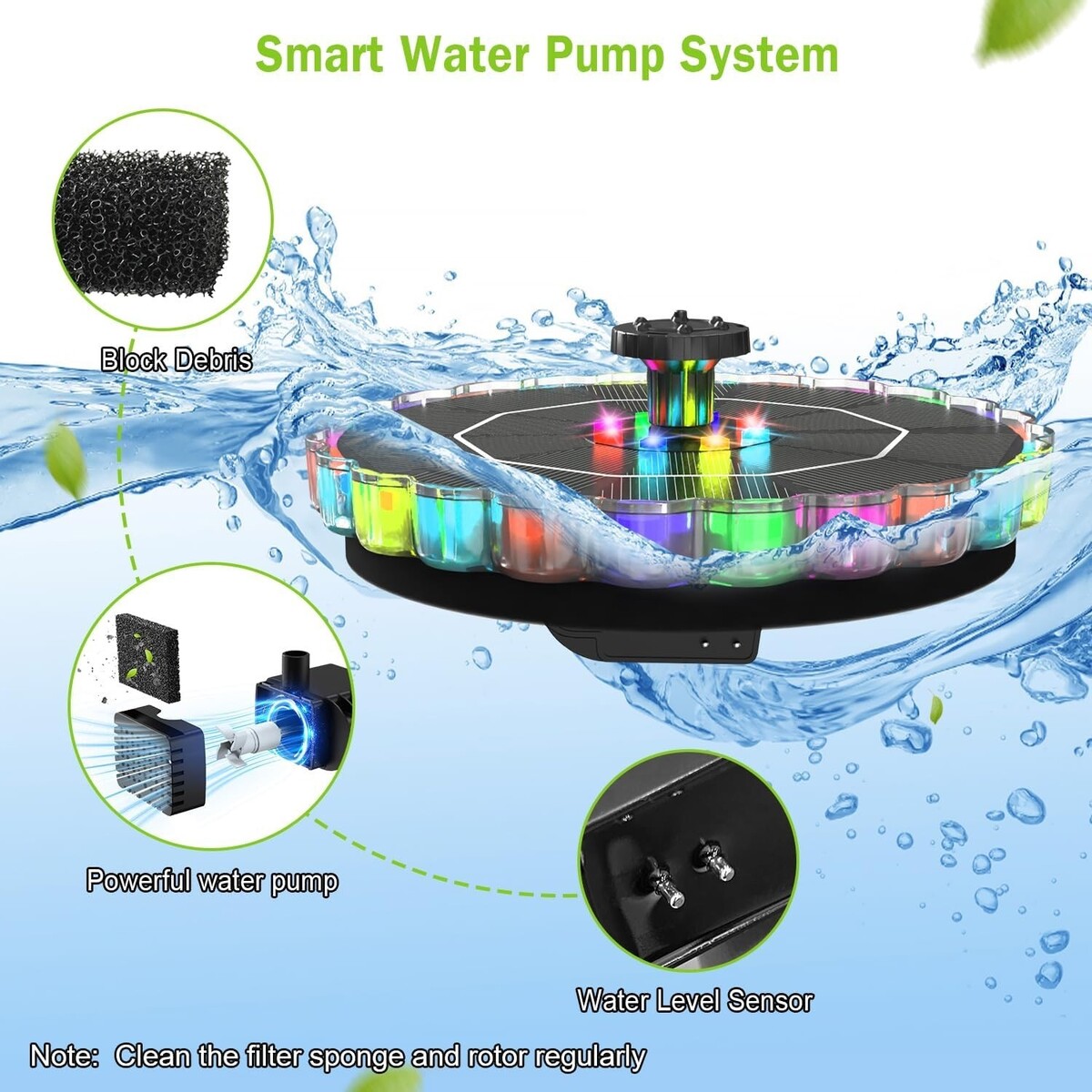If you're seeking an eye-catching addition to your garden or a serene enhancement for your bird bath, this fountain is your ideal choice. Its customizable features allow you to express your unique taste while providing a serene environment for birds to visit. The charming LED lights create a magical feel during the evening hours, and the smart safety features ensure your fountain operates reliably without worry.