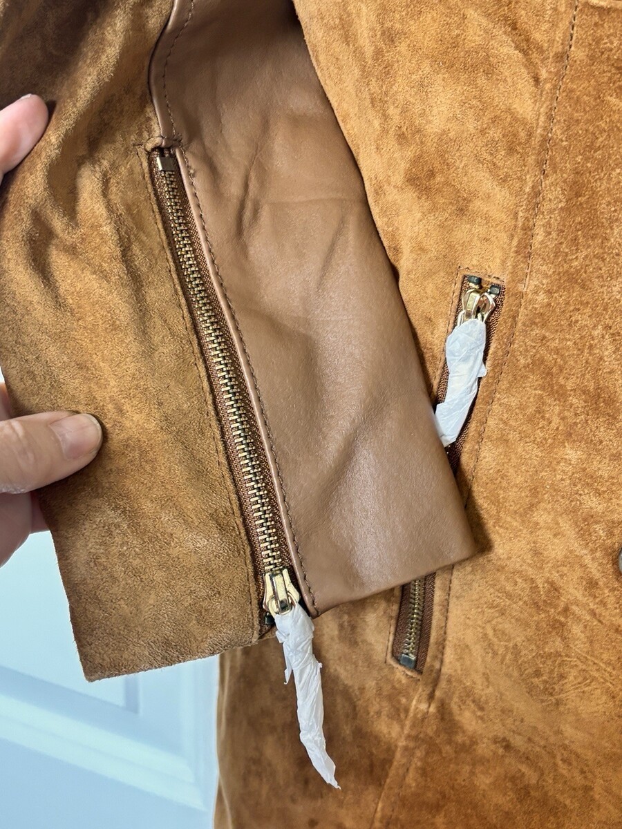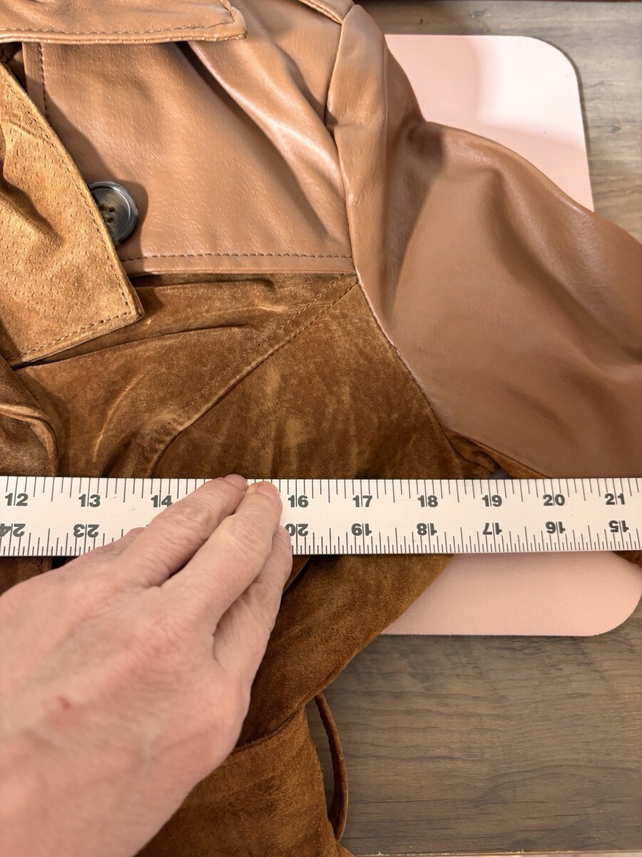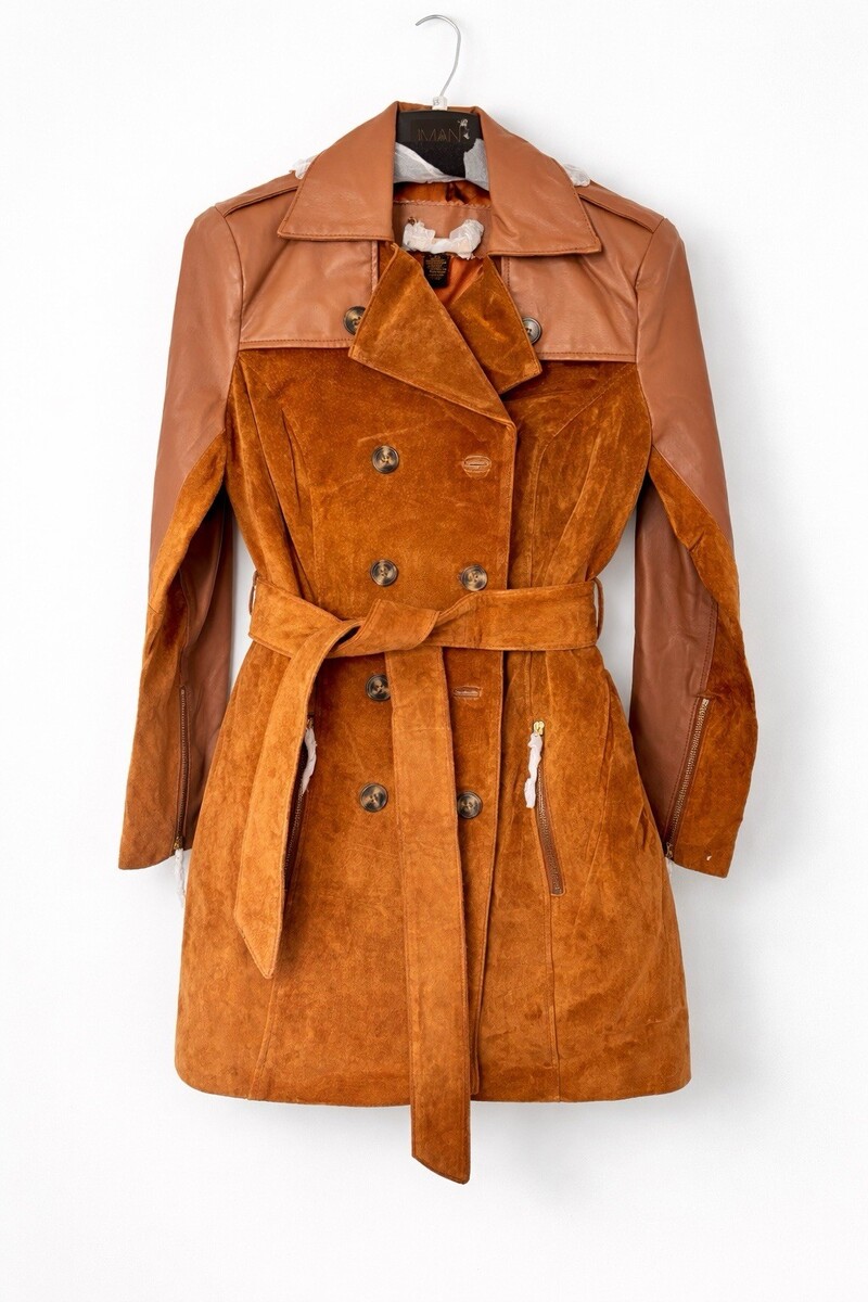 IMAN Global Chic Suede Leather Trench Belt 70s Retro Boho Coat Double Breast XS