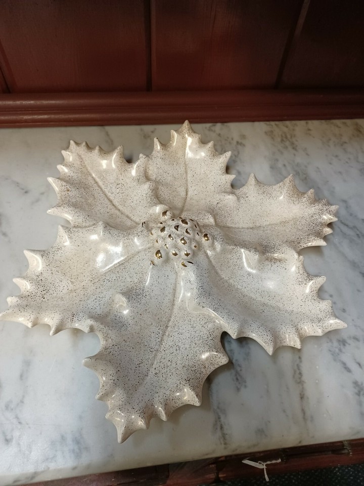 Vtg Mold Holly Leaf & Berry Christmas Ceramic Plate Serving Dish Platter MCM 14"