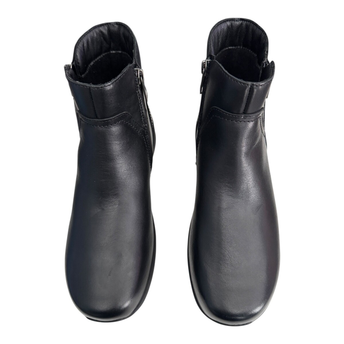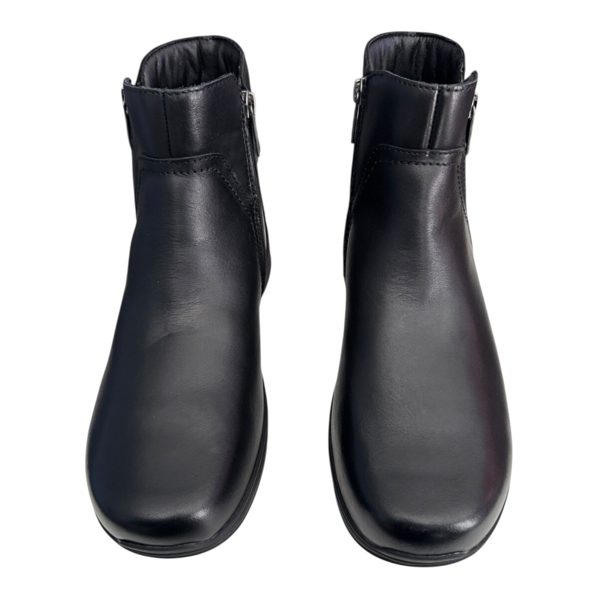 Durable black leather upper with convenient side zippers for easy on and off