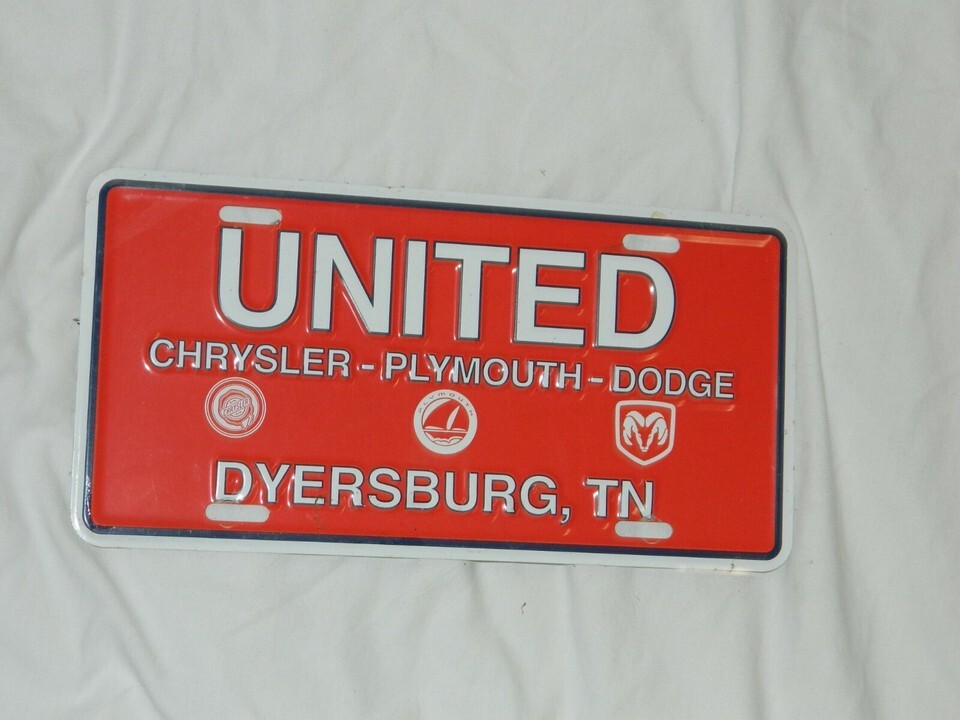 Vintage Dyersburg Tennessee License Plate / UNITED Chrysler / Ad Aluminum Sign