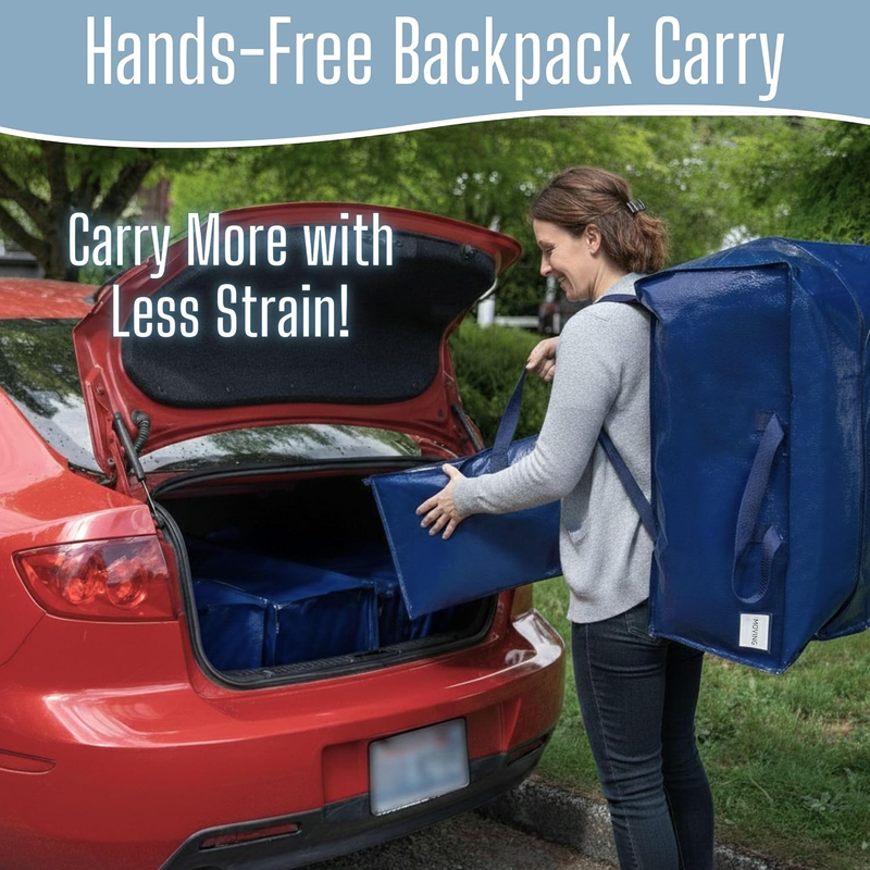 ?BACKPACK SHOULDER STRAPS?Hands-Free Comfortable Carrying. Built-in backpack-style shoulder straps let you carry heavy loads comfortably on stairs, dorms, and long walks, making moving easier and more ergonomic than totes, storage bags, or boxes.