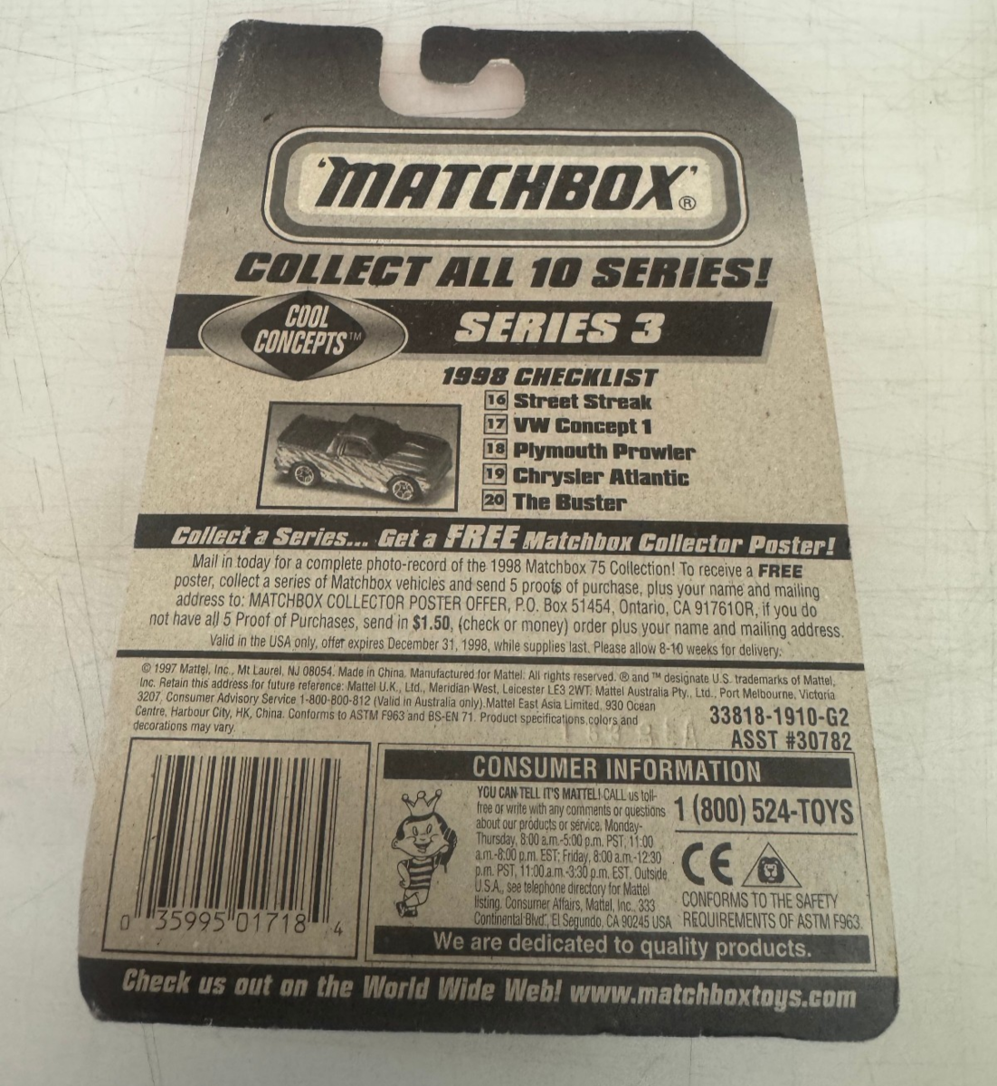 MATCHBOX 1997 PLYMOUTH PROWLER #18 OF 75 1:64 DIECAST BRAND NEW