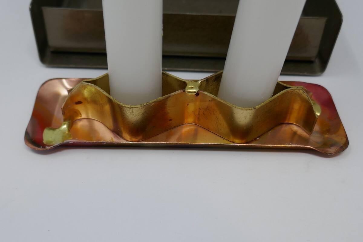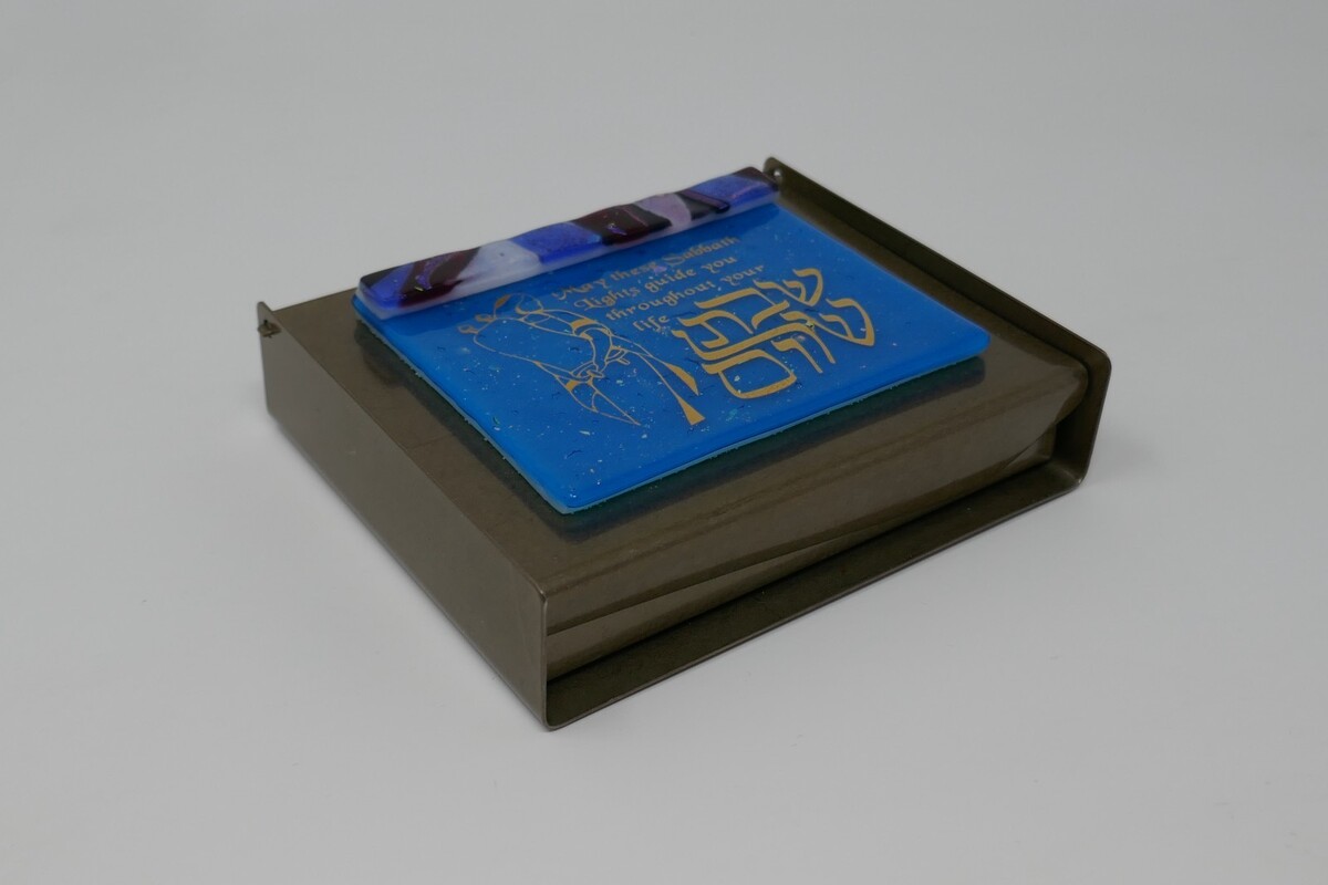 Gary Rosenthal Vintage Judaica Fused Glass Metal Travel Shabbat Candle Holder