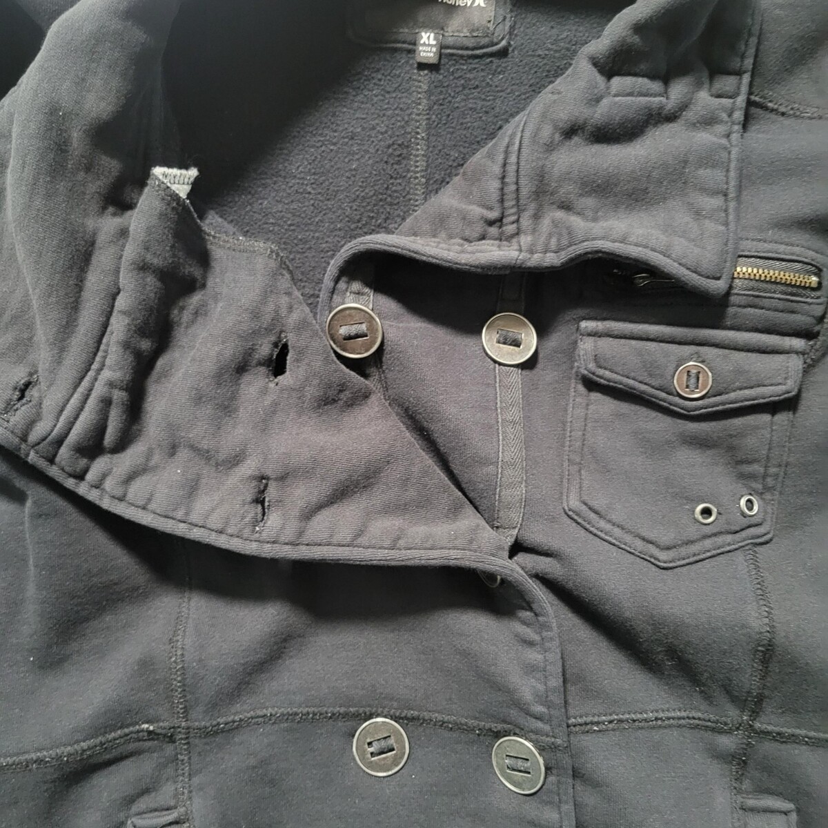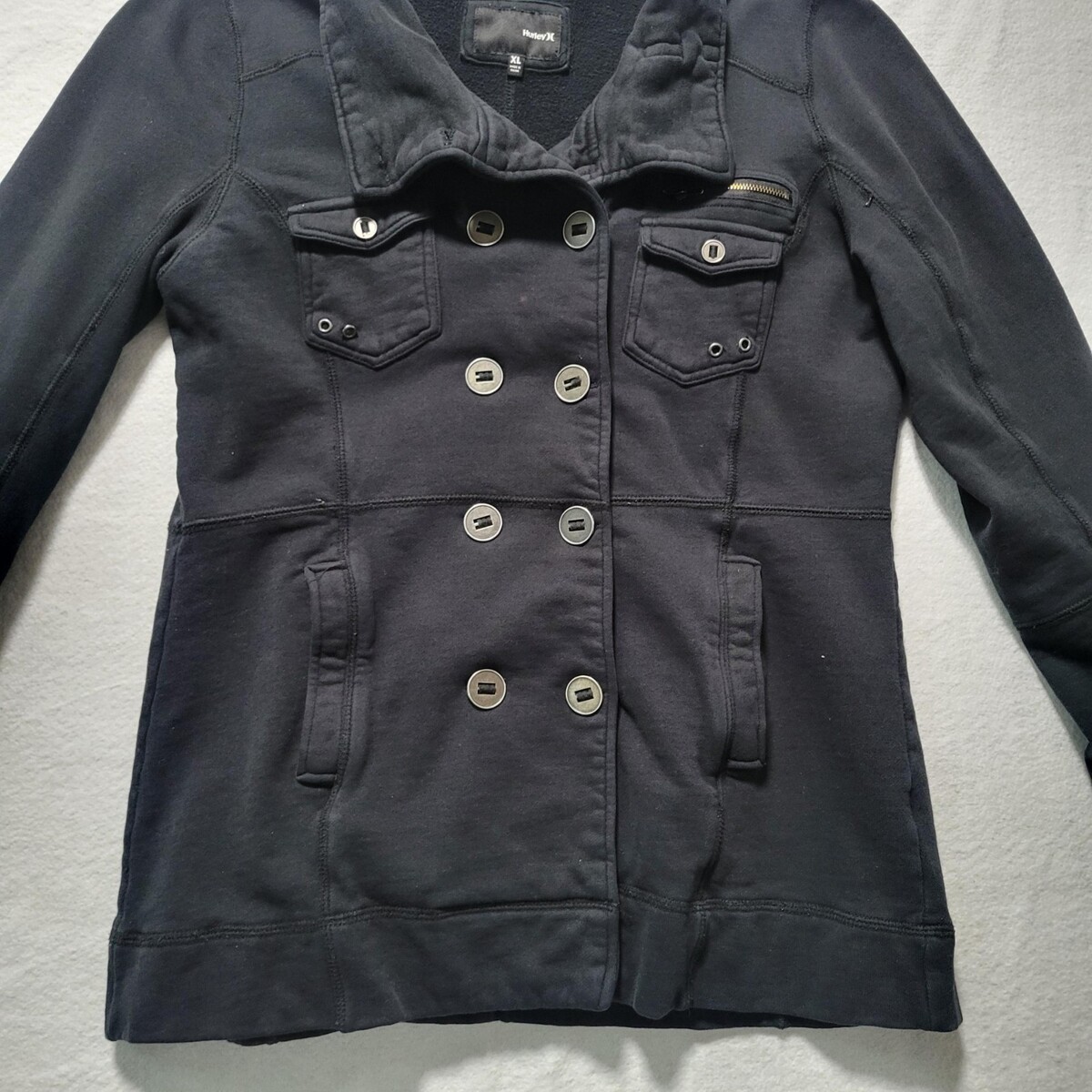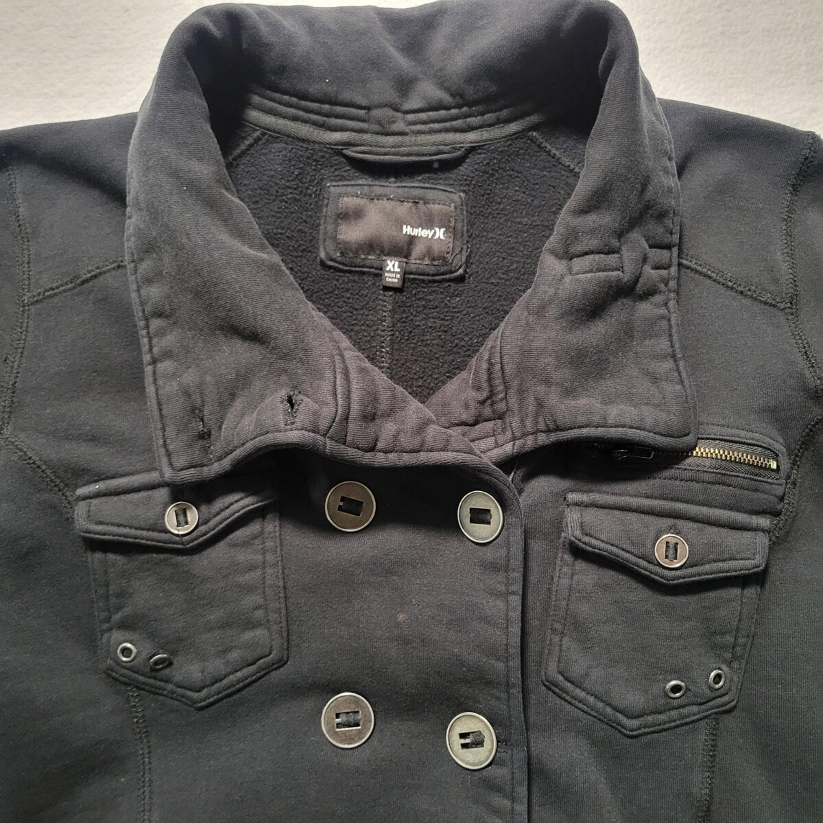 Hurley Black Military Style Jacket Women?s Double Breasted Metal Button Coat XL