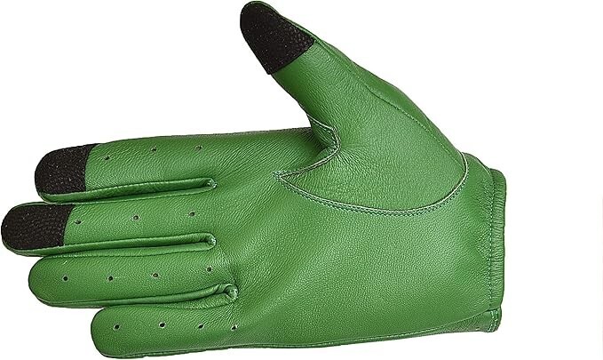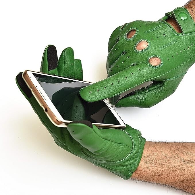 Men Driving Texting Touch Screen Leather Gloves Green Size Small