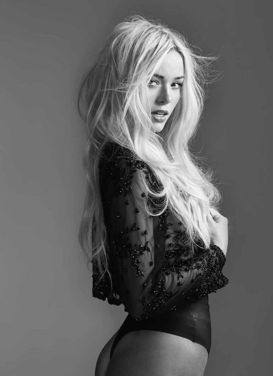 THIS IS A 4x6 BLACK AND WHITE PHOTO OF OLIVIA DUNNE.
