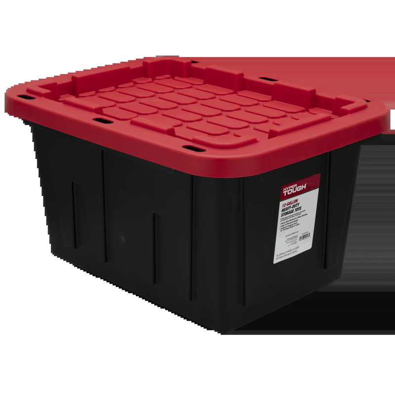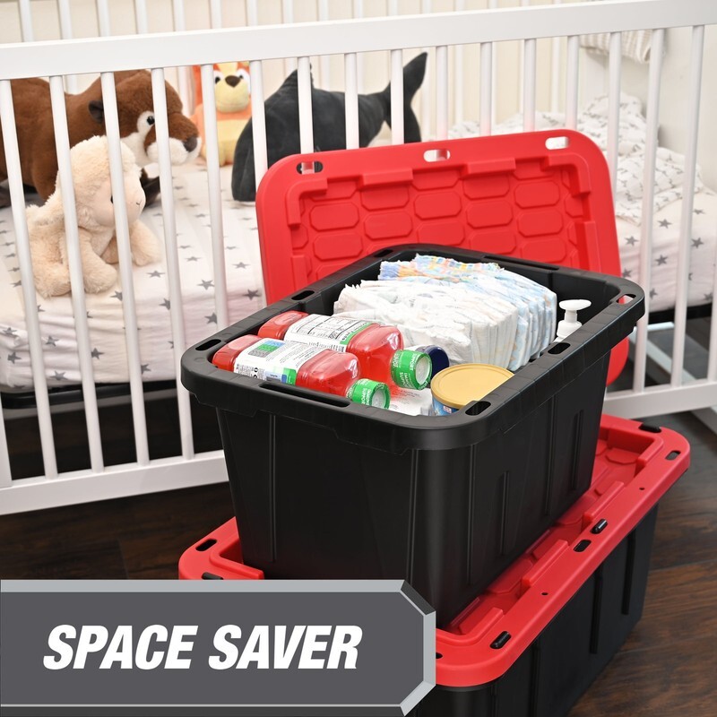 12 Gallon Small Storage Bin with Snap Lid, Black and Red, Heavy Duty Plastic Sto