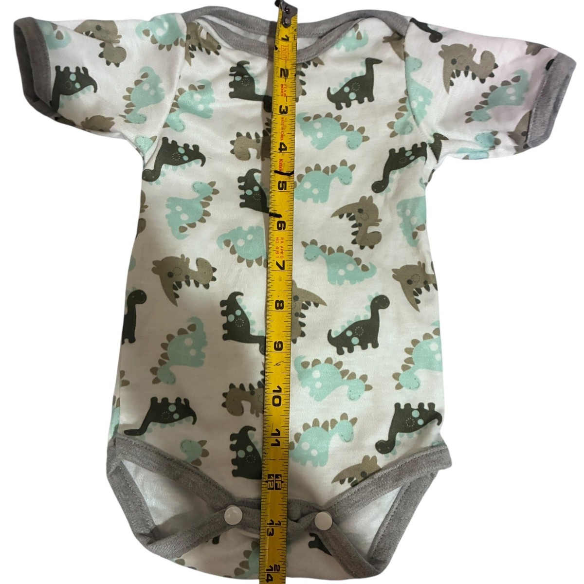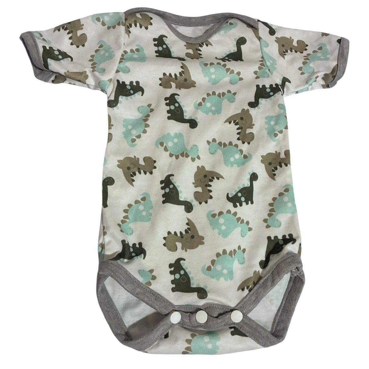 Baby 0-3M Dinosaur Print Short Sleeve Bodysuit White Green Grey Snaps Bottom