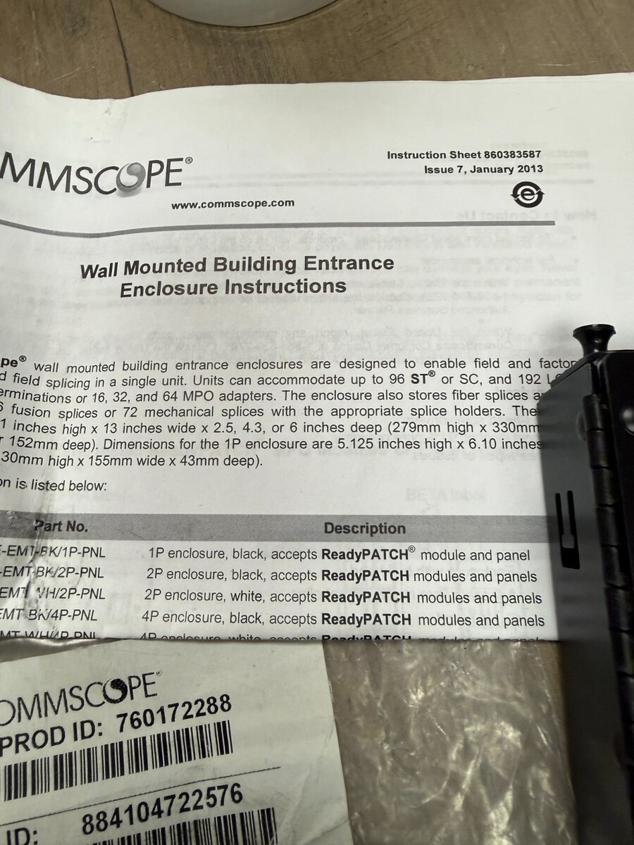 Commscope 760172288 Fiber Wall Box WBE-EMT-BK-1P-PNL NEW