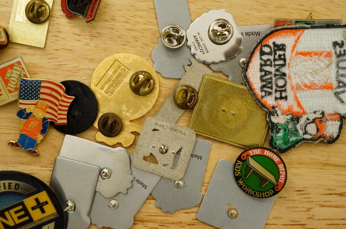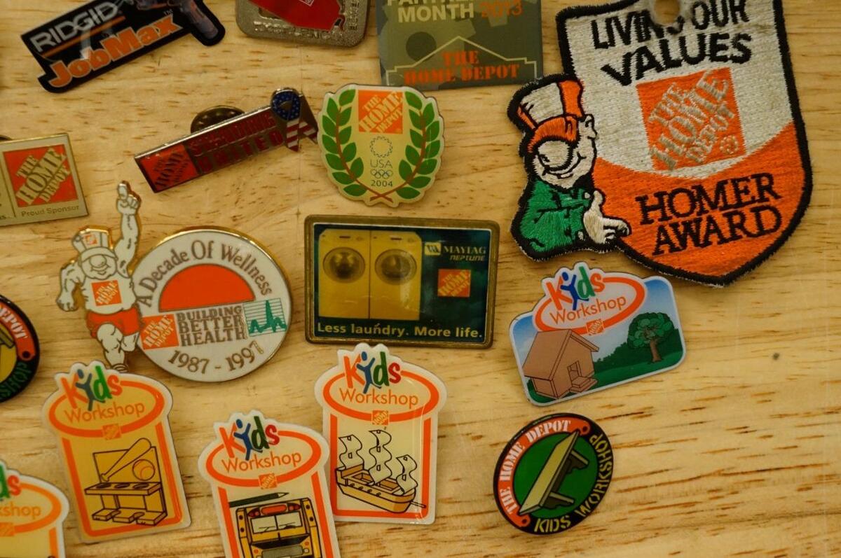Vintage Jewelry Lapel Pin Lot Home Depot Crew Event Promo Workshop Advertising - good variety of styles and sizes. No smoke or pet odors.