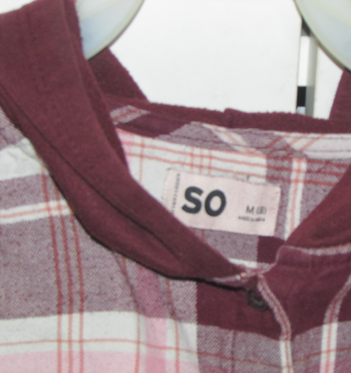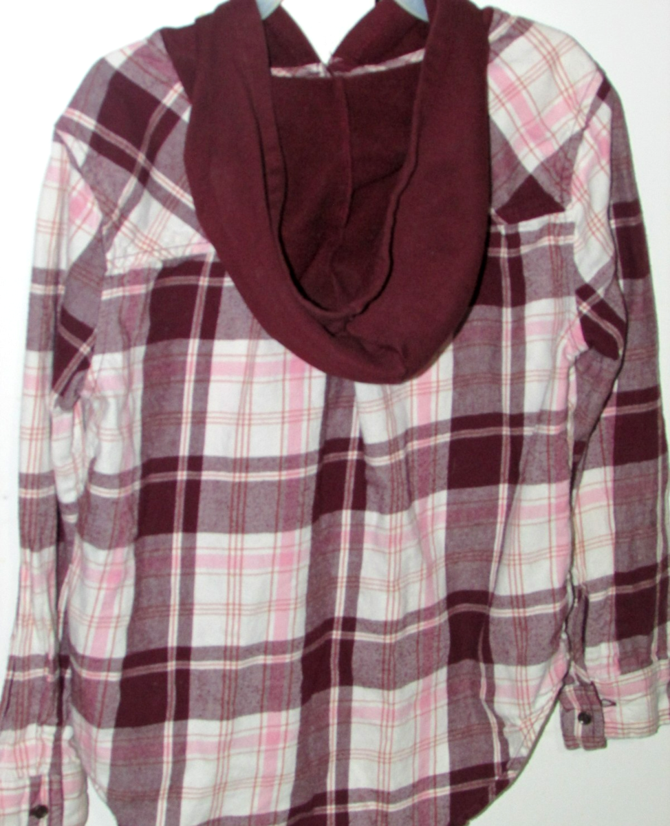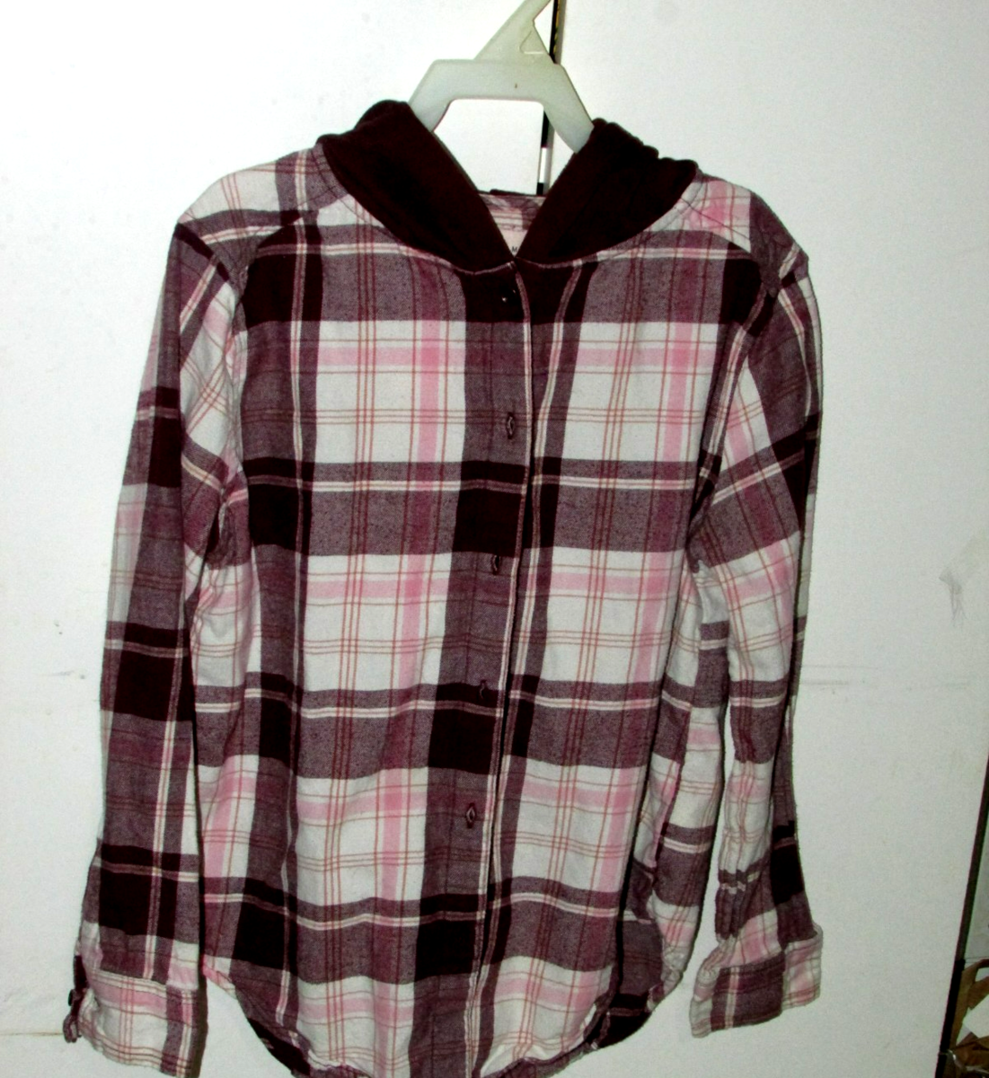 plaid HOODIE LONG SLEEVED SHIRT brown white peach SO Med-8 ()
