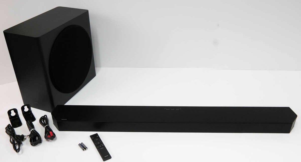 Description: Includes Soundbar, Wireless Subwoofer, Remote Control with batteries, 2 x Power Cables, HDMI Cable, Wall Mount Kit. Scratches and scuffs on the bodies.