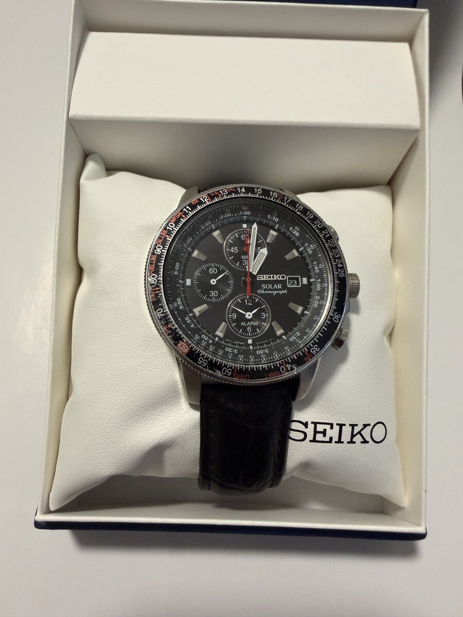 Seiko Men's Watch SSC007 Prospex Solar Chronograph Black Dial Leather Band
