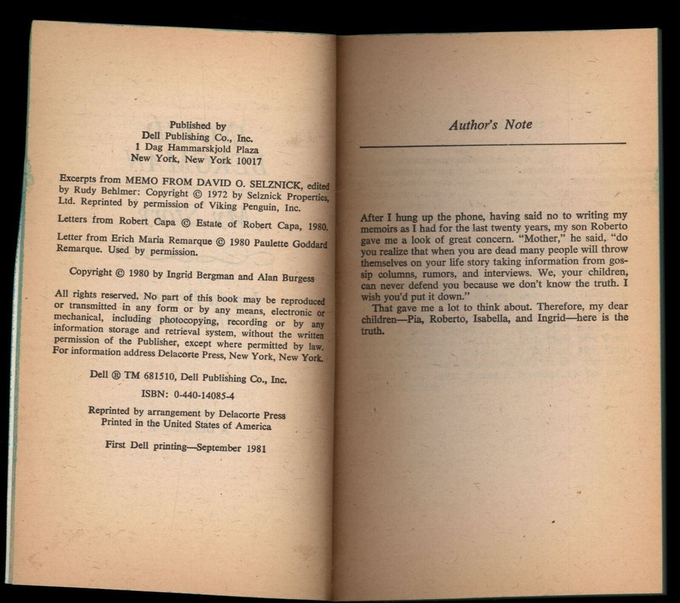 INGRID BERGMAN MY STORY by Ingrid Bergman & Alan Burgess * 1981 1st Dell PB