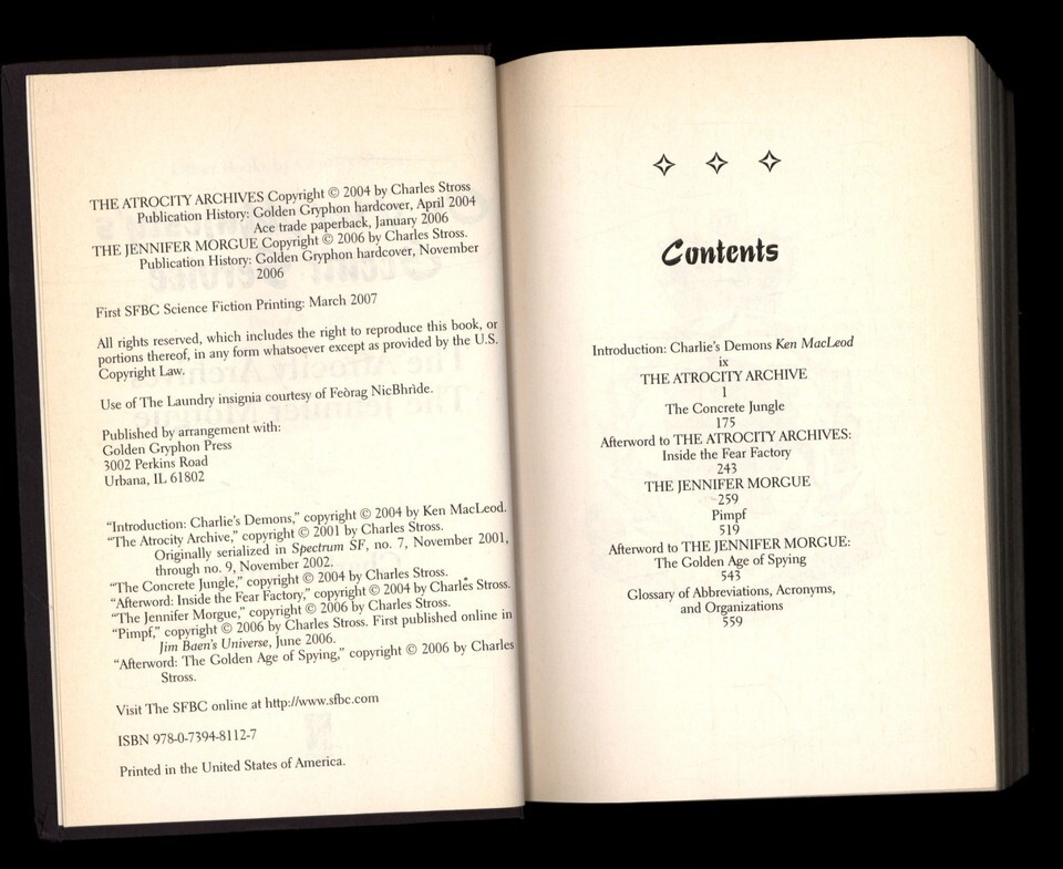 ON HER MAJESTY'S OCCULT SERVICE by Charles Stross * 2007 SFBC Hardcover Jacket