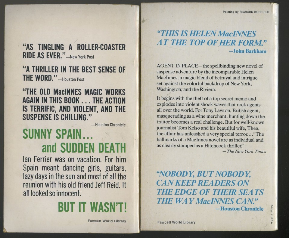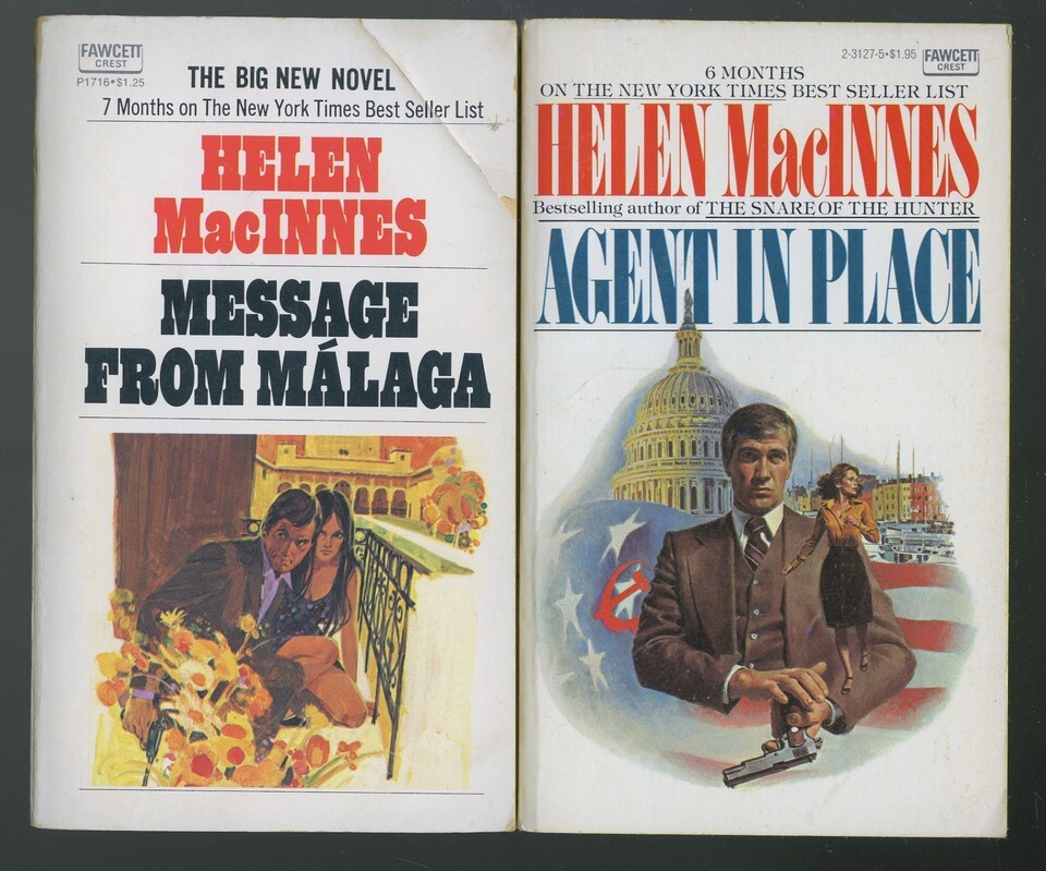 LOT of TWO paperback books by HELEN MacINNES Agent in Place Message from Malaga