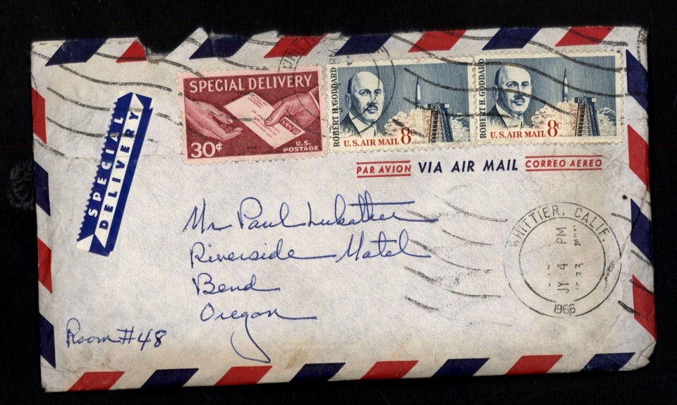 July 1966 * Envelope Airmail Special Delivery to Bend OR * letter clipping stamp