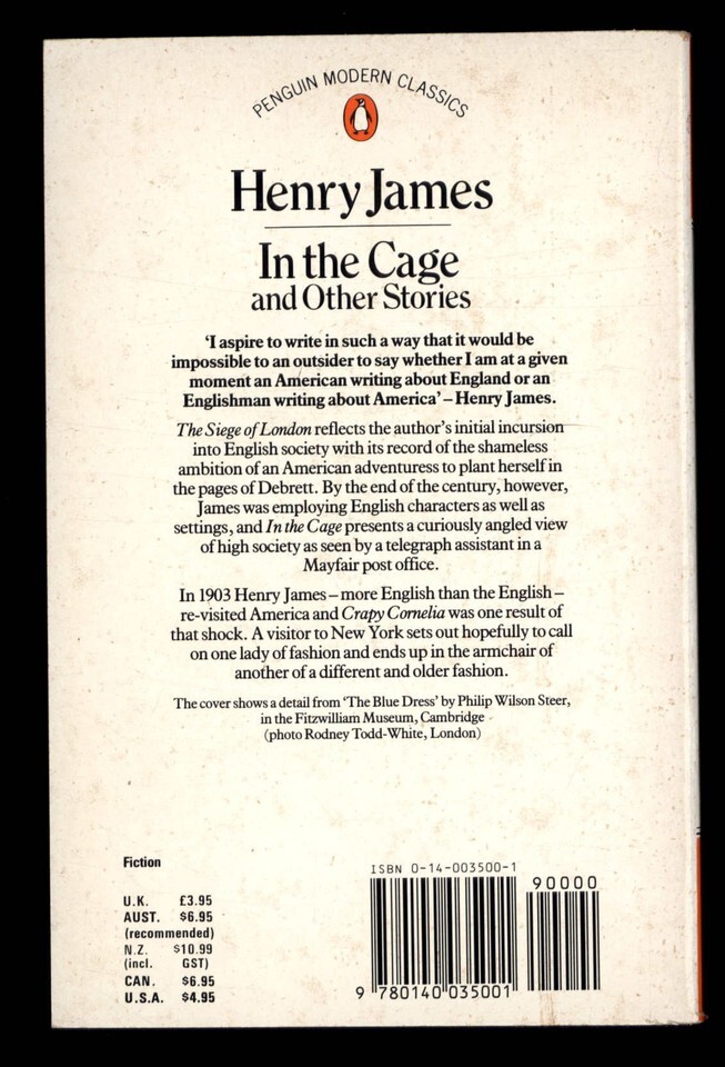 IN THE CAGE and OTHER STORIES by Henry James * 1987 Penguin Modern Classic TPB