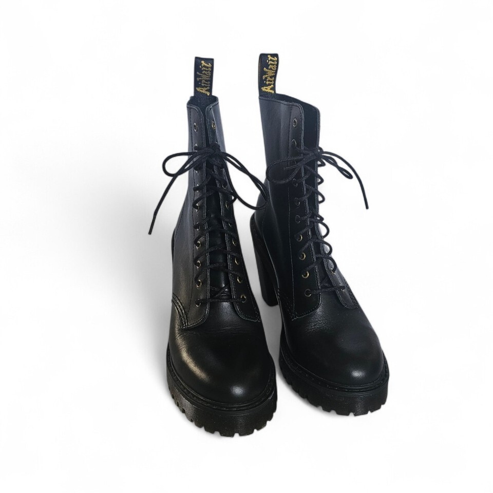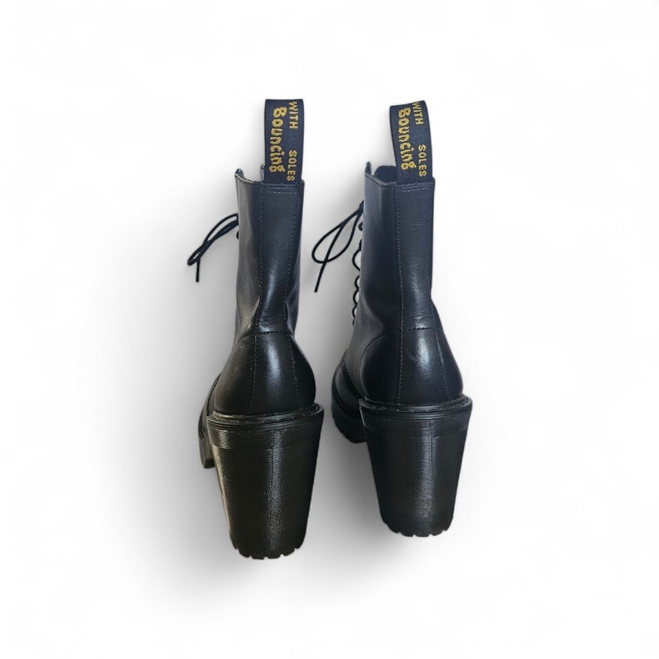 Dr Martens Kendra Soft Black Sendal Leather Mono Chunky Hi Heeled Boots US9/UK7